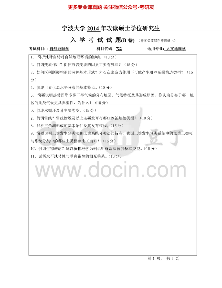 宁波大学722自然地理学2012-2015考研真题汇编.Image.Marked