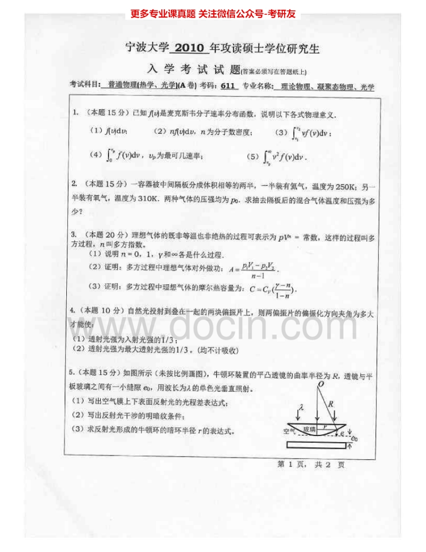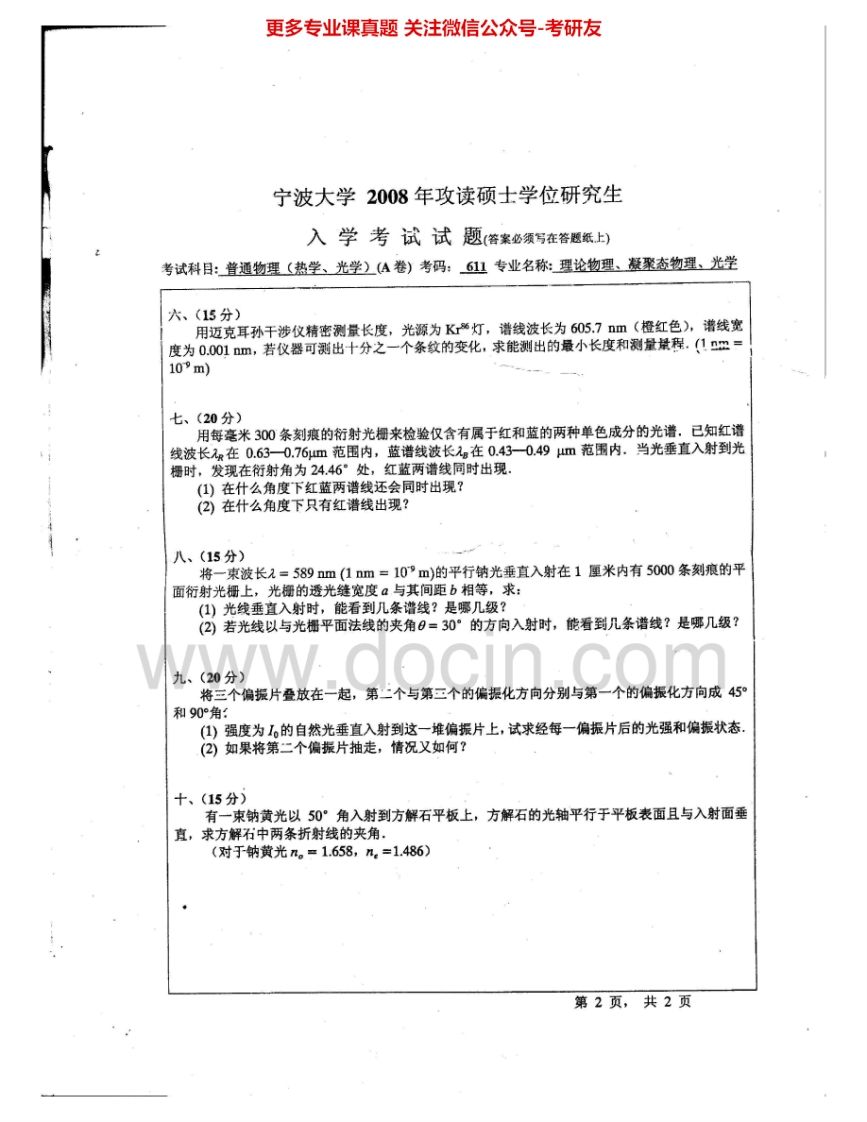 宁波大学672普通物理(热学、光学)2008、2010-2011、2013-2014考研真题汇编.Image.Marked猴哥6个月前发布关注私信2.93MB14页06517宁波大学672普通物理(热学、光学)2008、2010-2011、2013-2014考研真题汇编.Image.Marked此内容为免费资源,请登录后查看¥0 登录查看免费资源 第1页 / 共14页 第2页 / 共14页 第3页 / 共14页 该文档为免费文档,您可直接下载完整版进行阅读 © 版权声明文章版权归作者所有,未经允许请勿转载。THE END《宁波大学》(672)普通物理(电磁学、光学)考研资料考研专业课 喜欢就支持一下吧点赞17赞赏 分享QQ空间微博QQ好友海报分享复制链接收藏