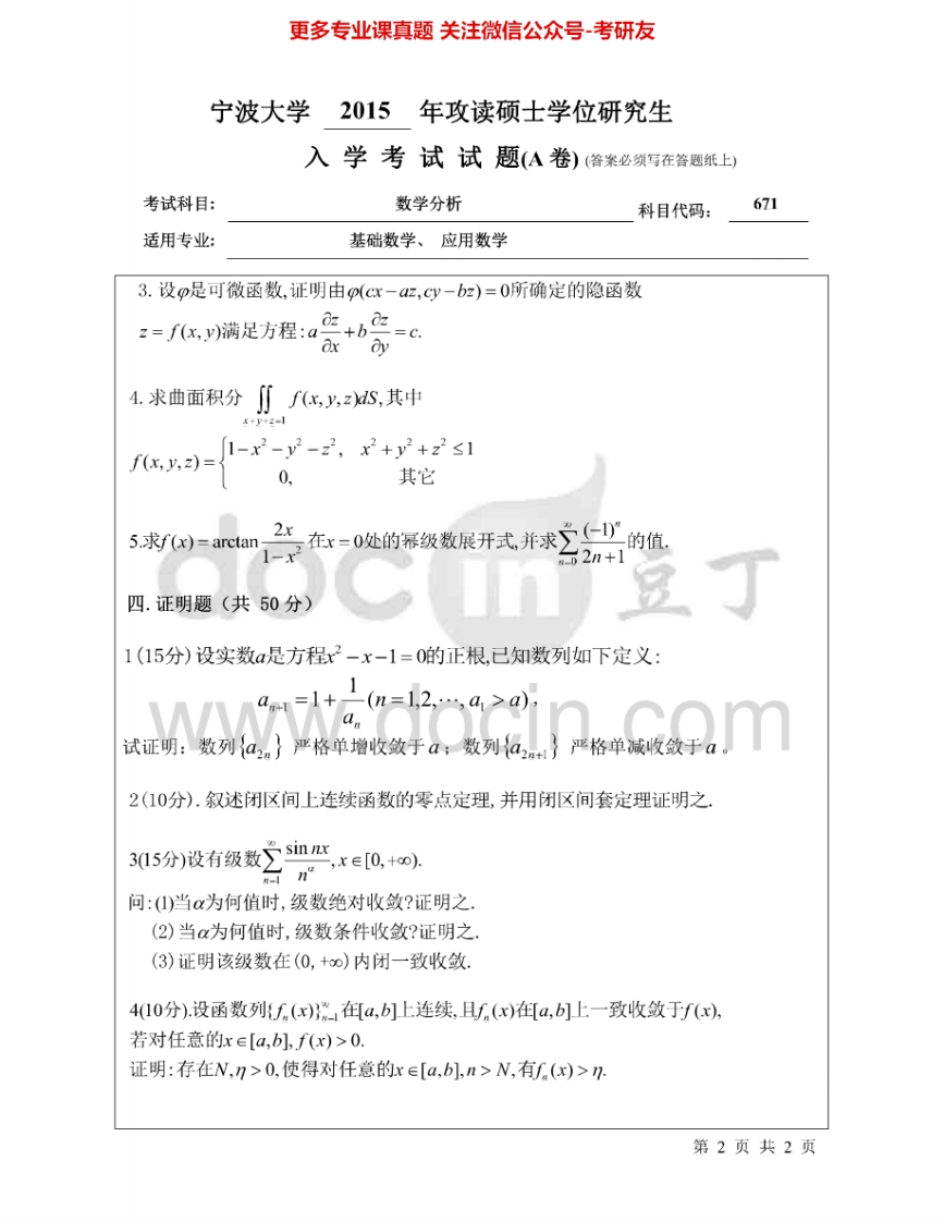 宁波大学671数学分析2004-2015其中2007-2009有答案考研真题汇编.Image.Marked