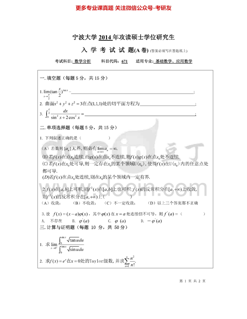 宁波大学671数学分析2004-2015其中2007-2009有答案考研真题汇编.Image.Marked-学习资源网 - 分享优质学习资料