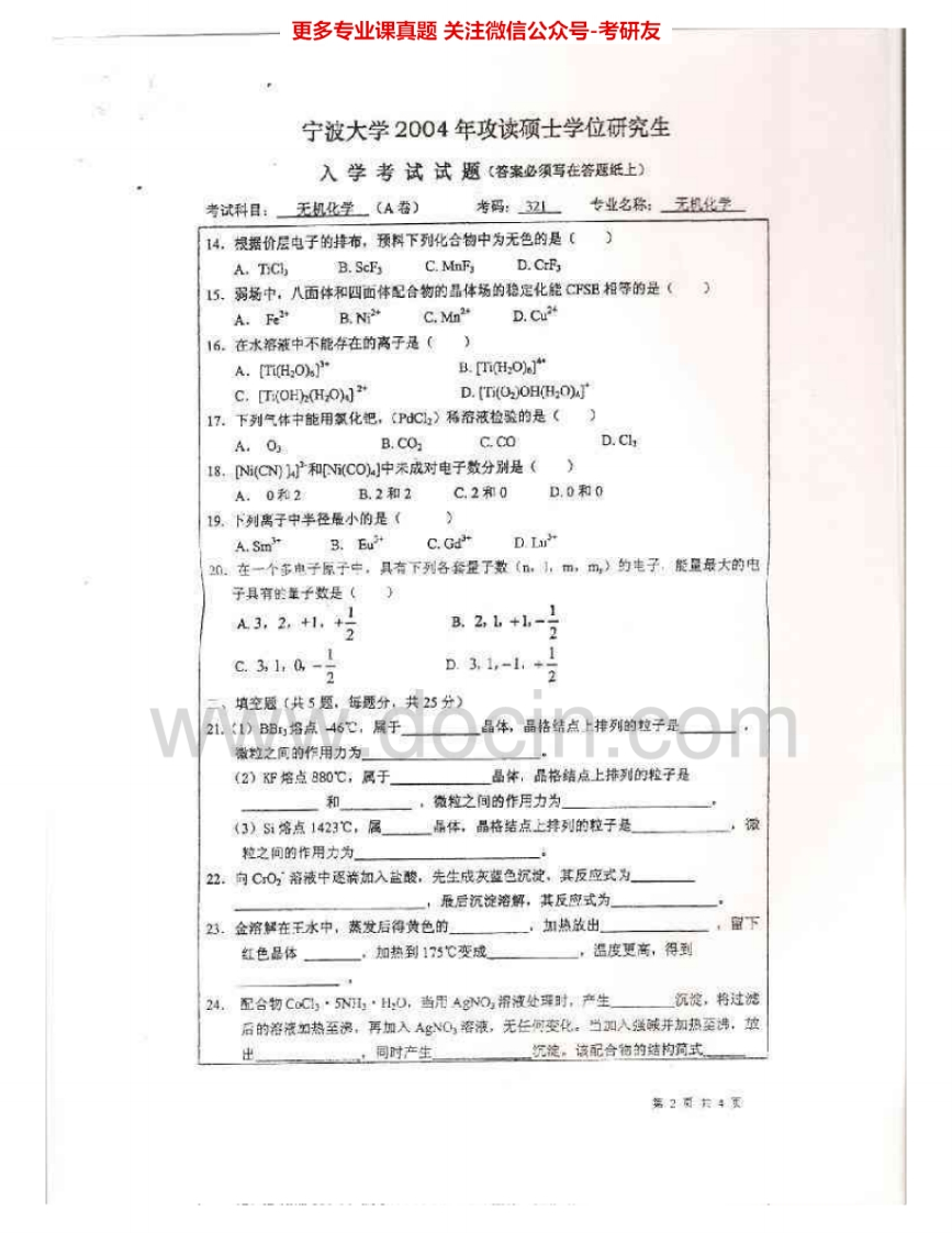 宁波大学681无机化学2004-2006、2009-2011、2013-2015其中09有答案考研真题汇编.Image.Marked猴哥6个月前发布关注私信12.11MB50页05531宁波大学681无机化学2004-2006、2009-2011、2013-2015其中09有答案考研真题汇编.Image.Marked此内容为免费资源,请登录后查看¥0 登录查看免费资源 第1页 / 共50页 第2页 / 共50页 第3页 / 共50页 该文档为免费文档,您可直接下载完整版进行阅读 © 版权声明文章版权归作者所有,未经允许请勿转载。THE END考研专业课 喜欢就支持一下吧点赞31赞赏 分享QQ空间微博QQ好友海报分享复制链接收藏