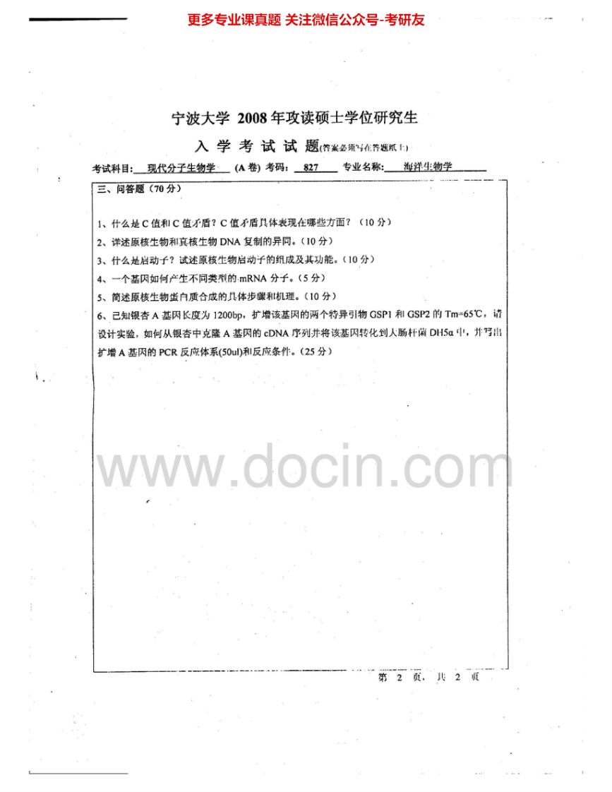 宁波大学941分子生物学2008、2011-2015其中08有答案考研真题汇编.Image.Marked猴哥6个月前发布关注私信2.71MB13页07364宁波大学941分子生物学2008、2011-2015其中08有答案考研真题汇编.Image.Marked此内容为免费资源,请登录后查看¥0 登录查看免费资源 第1页 / 共13页 第2页 / 共13页 第3页 / 共13页 该文档为免费文档,您可直接下载完整版进行阅读 © 版权声明文章版权归作者所有,未经允许请勿转载。THE END《宁波大学》(941)分子生物学考研资料考研专业课 喜欢就支持一下吧点赞64赞赏 分享QQ空间微博QQ好友海报分享复制链接收藏
