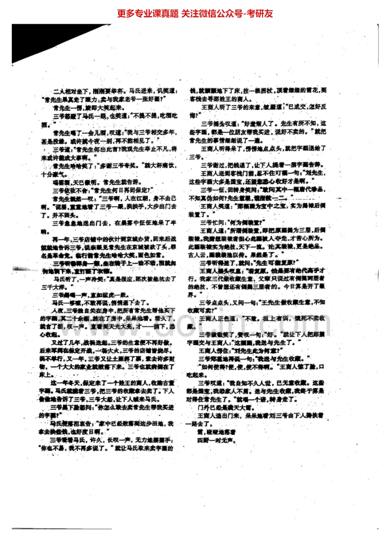 宁波大学文学评论与写作2004-2010其中2007-2009有答案考研真题汇编.Image.Marked猴哥6个月前发布关注私信13.49MB32页05465宁波大学文学评论与写作2004-2010其中2007-2009有答案考研真题汇编.Image.Marked此内容为免费资源,请登录后查看¥0 登录查看免费资源 第1页 / 共32页 第2页 / 共32页 第3页 / 共32页 该文档为免费文档,您可直接下载完整版进行阅读 © 版权声明文章版权归作者所有,未经允许请勿转载。THE END考研专业课 喜欢就支持一下吧点赞65赞赏 分享QQ空间微博QQ好友海报分享复制链接收藏