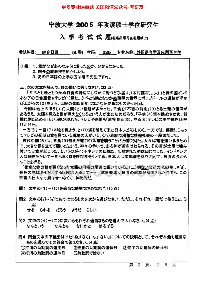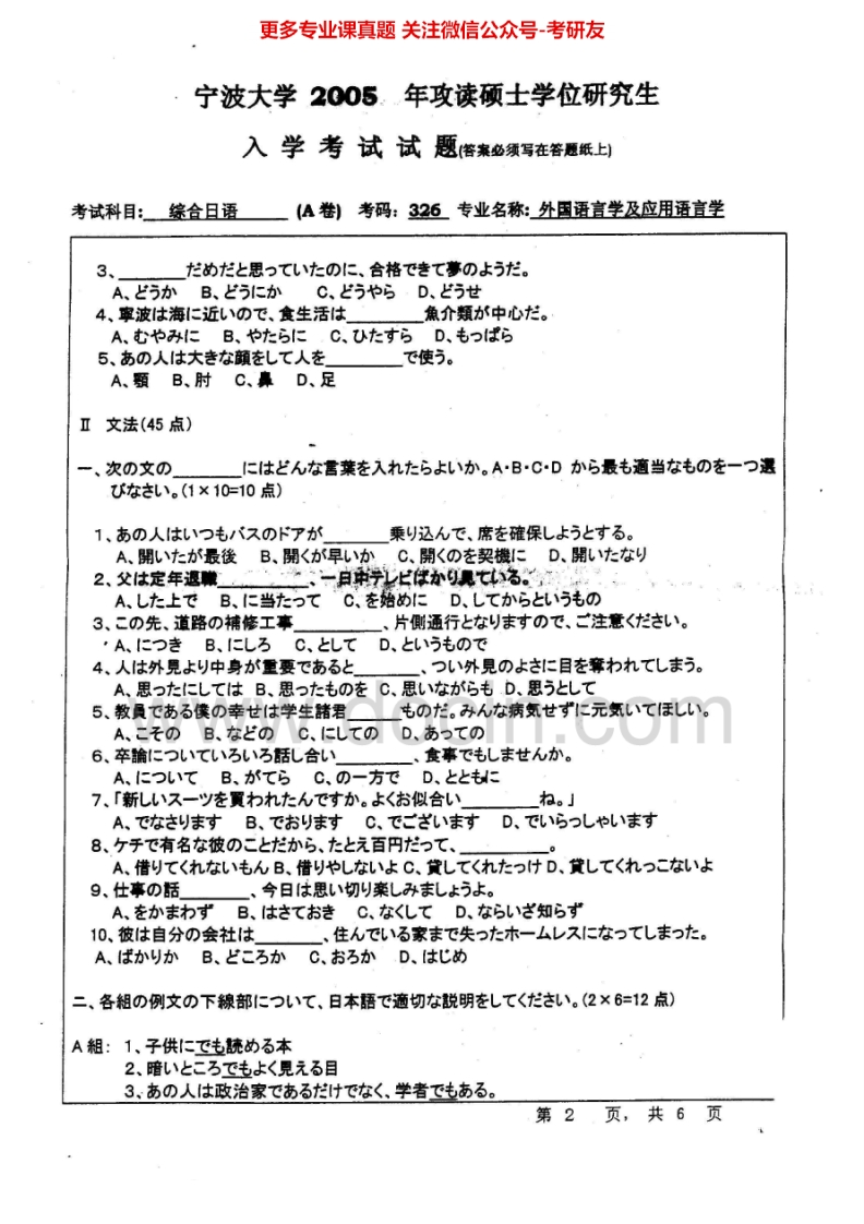 宁波大学综合日语2005-2006考研真题汇编.Image.Marked猴哥6个月前发布关注私信4.56MB11页07264宁波大学综合日语2005-2006考研真题汇编.Image.Marked此内容为免费资源,请登录后查看¥0 登录查看免费资源 第1页 / 共11页 第2页 / 共11页 第3页 / 共11页 该文档为免费文档,您可直接下载完整版进行阅读 © 版权声明文章版权归作者所有,未经允许请勿转载。THE END考研专业课 喜欢就支持一下吧点赞64赞赏 分享QQ空间微博QQ好友海报分享复制链接收藏