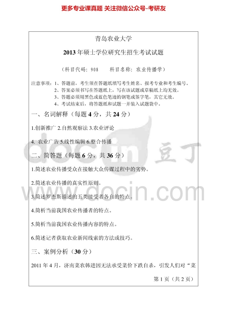 青岛农业大学908农业传播学2012-2014考研真题汇编.Image.Marked猴哥6个月前发布关注私信0.49MB6页07912青岛农业大学908农业传播学2012-2014考研真题汇编.Image.Marked此内容为免费资源,请登录后查看¥0 登录查看免费资源 第1页 / 共6页 第2页 / 共6页 第3页 / 共6页 该文档为免费文档,您可直接下载完整版进行阅读 © 版权声明文章版权归作者所有,未经允许请勿转载。THE END考研专业课 喜欢就支持一下吧点赞12赞赏 分享QQ空间微博QQ好友海报分享复制链接收藏