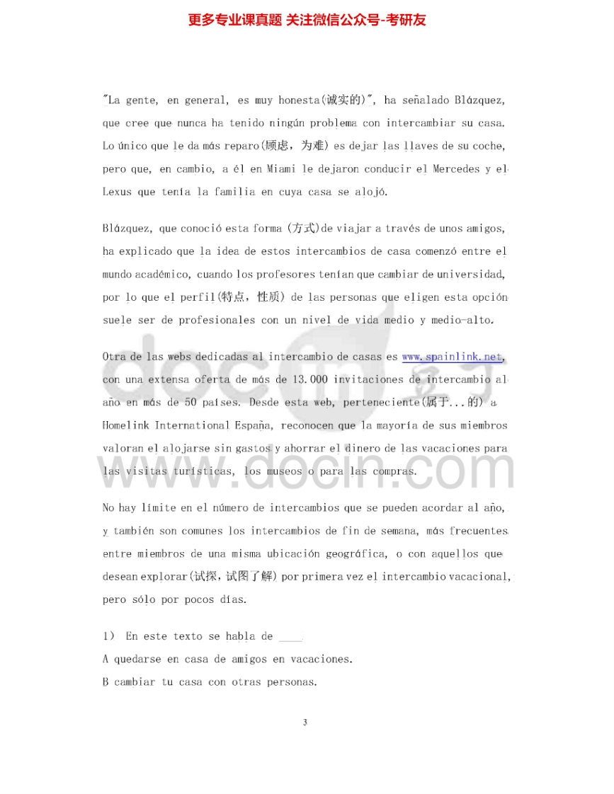 青岛大学246西班牙语2012、2015考研真题汇编猴哥6个月前发布关注私信0.67MB9页06762青岛大学246西班牙语2012、2015考研真题汇编此内容为免费资源,请登录后查看¥0 登录查看免费资源 第1页 / 共9页 第2页 / 共9页 第3页 / 共9页 该文档为免费文档,您可直接下载完整版进行阅读 © 版权声明文章版权归作者所有,未经允许请勿转载。THE END考研专业课 喜欢就支持一下吧点赞62赞赏 分享QQ空间微博QQ好友海报分享复制链接收藏