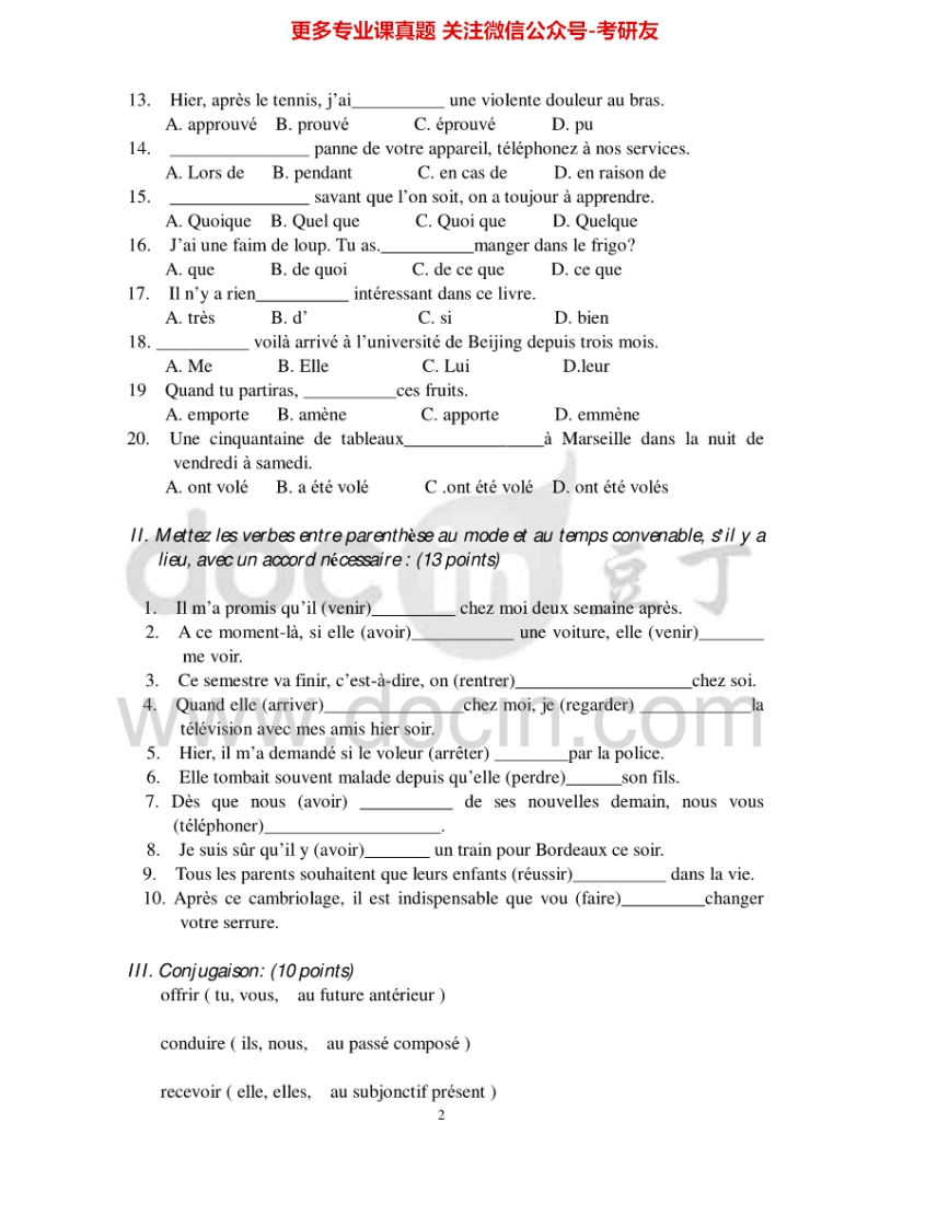 青岛大学241法语2009-2010、2012-2013考研真题汇编猴哥6个月前发布关注私信1.95MB27页03155青岛大学241法语2009-2010、2012-2013考研真题汇编此内容为免费资源,请登录后查看¥0 登录查看免费资源 第1页 / 共27页 第2页 / 共27页 第3页 / 共27页 该文档为免费文档,您可直接下载完整版进行阅读 © 版权声明文章版权归作者所有,未经允许请勿转载。THE END考研专业课 喜欢就支持一下吧点赞55赞赏 分享QQ空间微博QQ好友海报分享复制链接收藏