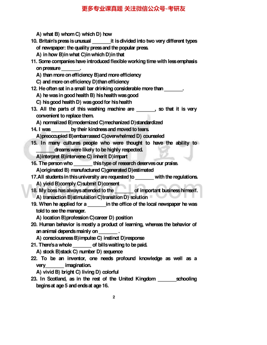 青岛大学243英语2009-2010、2012考研真题汇编猴哥6个月前发布关注私信2.82MB31页07622青岛大学243英语2009-2010、2012考研真题汇编此内容为免费资源,请登录后查看¥0 登录查看免费资源 第1页 / 共31页 第2页 / 共31页 第3页 / 共31页 该文档为免费文档,您可直接下载完整版进行阅读 © 版权声明文章版权归作者所有,未经允许请勿转载。THE END考研专业课 喜欢就支持一下吧点赞22赞赏 分享QQ空间微博QQ好友海报分享复制链接收藏