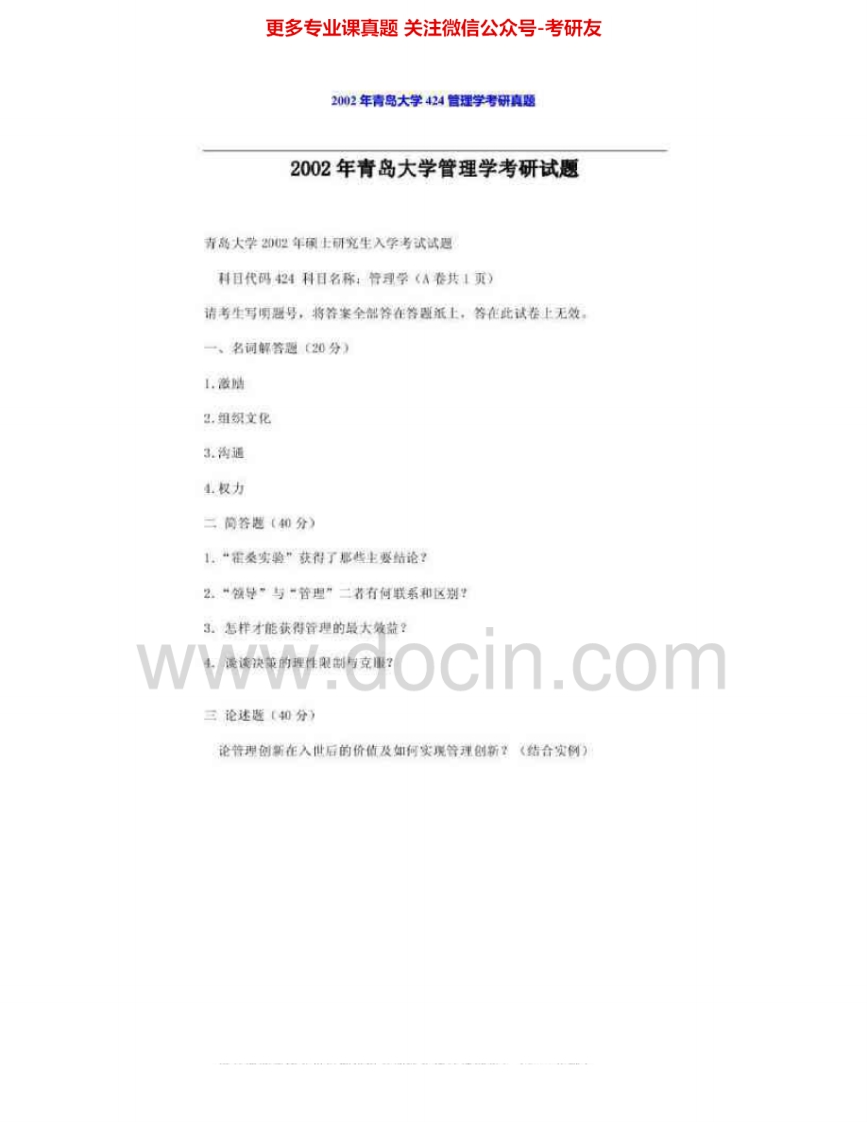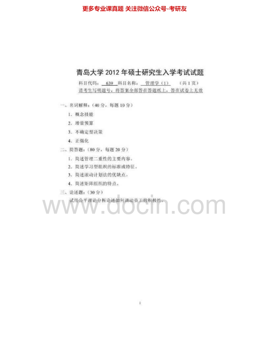 青岛大学639管理学(1)2001-2002、2012、2014考研真题汇编猴哥6个月前发布关注私信0.67MB5页05462青岛大学639管理学(1)2001-2002、2012、2014考研真题汇编此内容为免费资源,请登录后查看¥0 登录查看免费资源 第1页 / 共5页 第2页 / 共5页 第3页 / 共5页 该文档为免费文档,您可直接下载完整版进行阅读 © 版权声明文章版权归作者所有,未经允许请勿转载。THE END《青岛大学》(639)公共管理学考研资料考研专业课 喜欢就支持一下吧点赞62赞赏 分享QQ空间微博QQ好友海报分享复制链接收藏