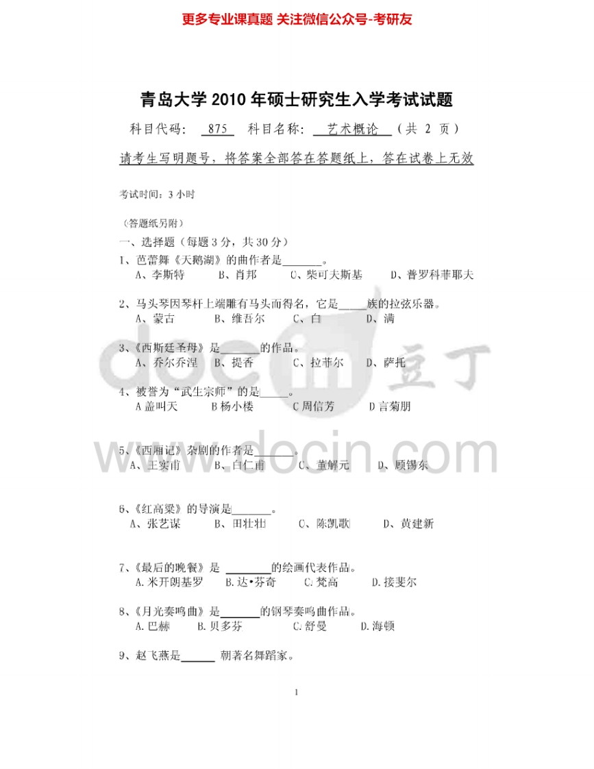 青岛大学812艺术概论2009-2010、2012-2014考研真题汇编猴哥6个月前发布关注私信0.31MB6页09847青岛大学812艺术概论2009-2010、2012-2014考研真题汇编此内容为免费资源,请登录后查看¥0 登录查看免费资源 第1页 / 共6页 第2页 / 共6页 第3页 / 共6页 该文档为免费文档,您可直接下载完整版进行阅读 © 版权声明文章版权归作者所有,未经允许请勿转载。THE END《青岛大学》(812)艺术概论考研资料考研专业课 喜欢就支持一下吧点赞47赞赏 分享QQ空间微博QQ好友海报分享复制链接收藏