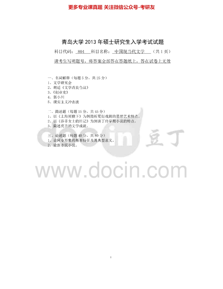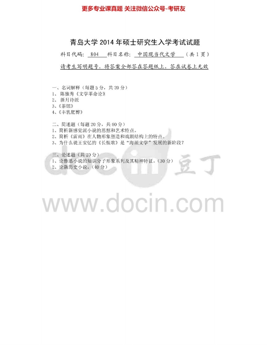青岛大学804中国现当代文学考研真题汇编猴哥6个月前发布关注私信0.31MB7页04214青岛大学804中国现当代文学考研真题汇编此内容为免费资源,请登录后查看¥0 登录查看免费资源 第1页 / 共7页 第2页 / 共7页 第3页 / 共7页 该文档为免费文档,您可直接下载完整版进行阅读 © 版权声明文章版权归作者所有,未经允许请勿转载。THE END考研专业课 喜欢就支持一下吧点赞14赞赏 分享QQ空间微博QQ好友海报分享复制链接收藏