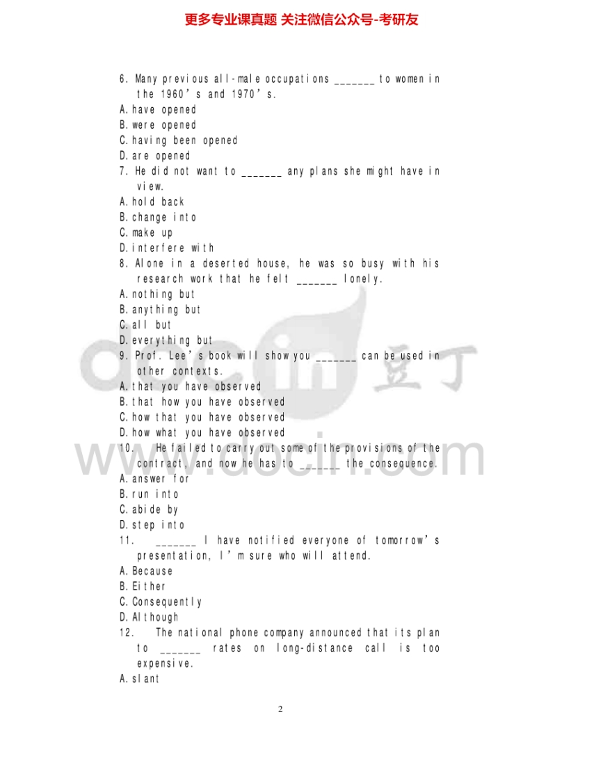 青岛大学622基础英语(2)2009、2015考研真题汇编猴哥6个月前发布关注私信1.75MB25页03047青岛大学622基础英语(2)2009、2015考研真题汇编此内容为免费资源,请登录后查看¥0 登录查看免费资源 第1页 / 共25页 第2页 / 共25页 第3页 / 共25页 该文档为免费文档,您可直接下载完整版进行阅读 © 版权声明文章版权归作者所有,未经允许请勿转载。THE END考研专业课 喜欢就支持一下吧点赞47赞赏 分享QQ空间微博QQ好友海报分享复制链接收藏