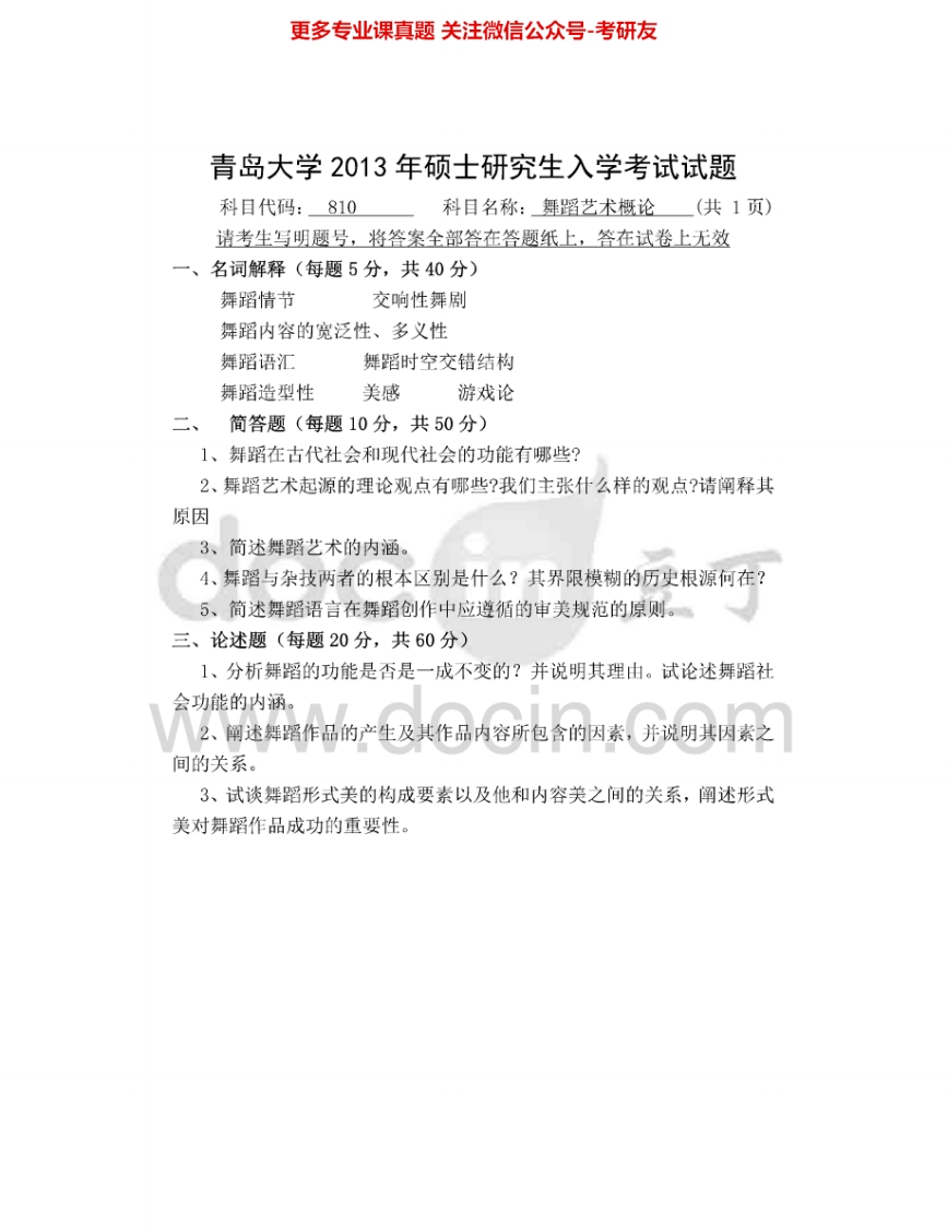 青岛大学810舞蹈艺术概论2012-2015考研真题汇编猴哥6个月前发布关注私信0.24MB4页09134青岛大学810舞蹈艺术概论2012-2015考研真题汇编此内容为免费资源,请登录后查看¥0 登录查看免费资源 第1页 / 共4页 第2页 / 共4页 第3页 / 共4页 该文档为免费文档,您可直接下载完整版进行阅读 © 版权声明文章版权归作者所有,未经允许请勿转载。THE END《青岛大学》(810)舞蹈艺术概论考研资料考研专业课 喜欢就支持一下吧点赞34赞赏 分享QQ空间微博QQ好友海报分享复制链接收藏