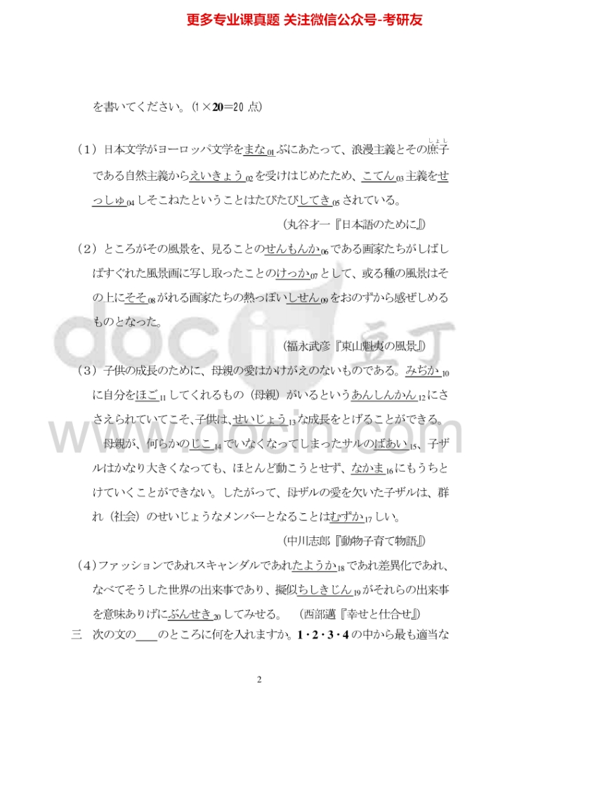 青岛大学807日语综合2009-2010、2013-2015考研真题汇编猴哥6个月前发布关注私信4MB54页04651青岛大学807日语综合2009-2010、2013-2015考研真题汇编此内容为免费资源,请登录后查看¥0 登录查看免费资源 第1页 / 共54页 第2页 / 共54页 第3页 / 共54页 该文档为免费文档,您可直接下载完整版进行阅读 © 版权声明文章版权归作者所有,未经允许请勿转载。THE END《青岛大学》(807)日语综合考研资料考研专业课 喜欢就支持一下吧点赞51赞赏 分享QQ空间微博QQ好友海报分享复制链接收藏