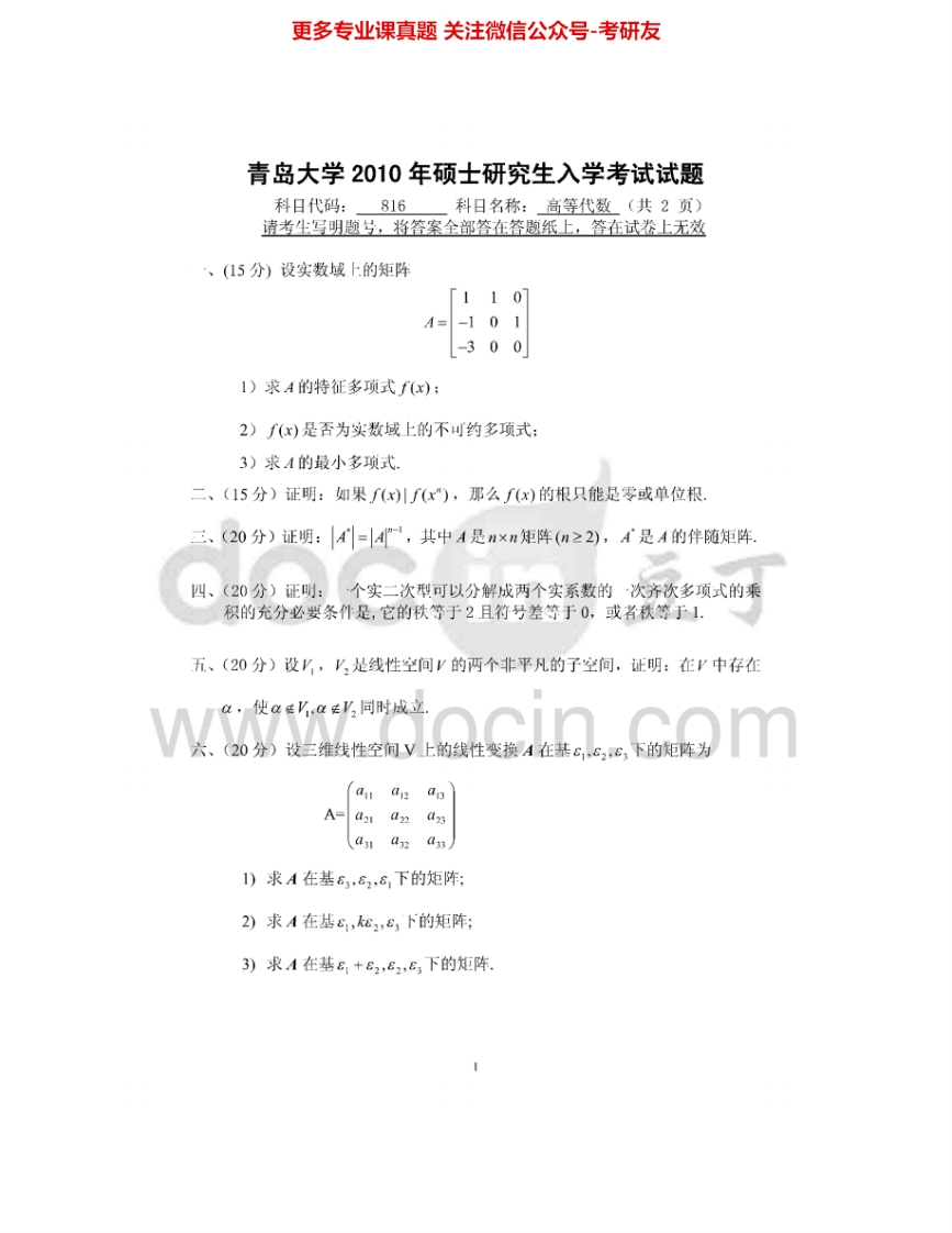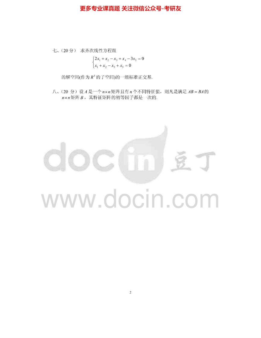 青岛大学816高等代数2009-2015考研真题汇编猴哥6个月前发布关注私信0.70MB13页07537青岛大学816高等代数2009-2015考研真题汇编此内容为免费资源,请登录后查看¥0 登录查看免费资源 第1页 / 共13页 第2页 / 共13页 第3页 / 共13页 该文档为免费文档,您可直接下载完整版进行阅读 © 版权声明文章版权归作者所有,未经允许请勿转载。THE END《青岛大学》(816)高等代数考研资料考研专业课 喜欢就支持一下吧点赞37赞赏 分享QQ空间微博QQ好友海报分享复制链接收藏