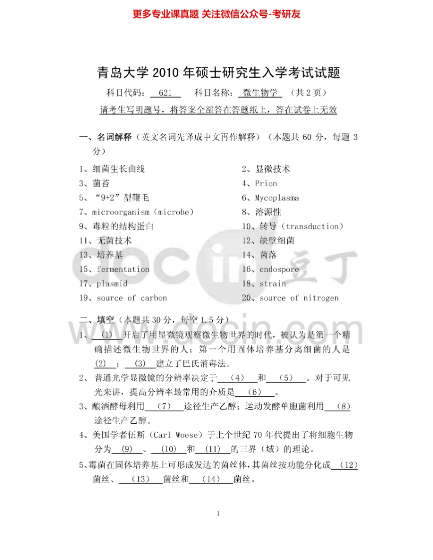 青岛大学846微生物学2009-2010、2012-2015考研真题汇编猴哥6个月前发布关注私信0.73MB11页04414青岛大学846微生物学2009-2010、2012-2015考研真题汇编此内容为免费资源,请登录后查看¥0 登录查看免费资源 第1页 / 共11页 第2页 / 共11页 第3页 / 共11页 该文档为免费文档,您可直接下载完整版进行阅读 © 版权声明文章版权归作者所有,未经允许请勿转载。THE END《青岛大学》(846)微生物学考研资料考研专业课 喜欢就支持一下吧点赞14赞赏 分享QQ空间微博QQ好友海报分享复制链接收藏