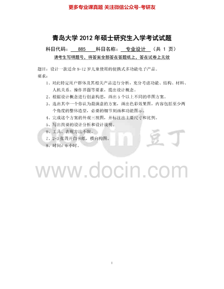 青岛大学885专业设计2011-2015考研真题汇编猴哥6个月前发布关注私信0.27MB5页09918青岛大学885专业设计2011-2015考研真题汇编此内容为免费资源,请登录后查看¥0 登录查看免费资源 第1页 / 共5页 第2页 / 共5页 第3页 / 共5页 该文档为免费文档,您可直接下载完整版进行阅读 © 版权声明文章版权归作者所有,未经允许请勿转载。THE END考研专业课 喜欢就支持一下吧点赞18赞赏 分享QQ空间微博QQ好友海报分享复制链接收藏