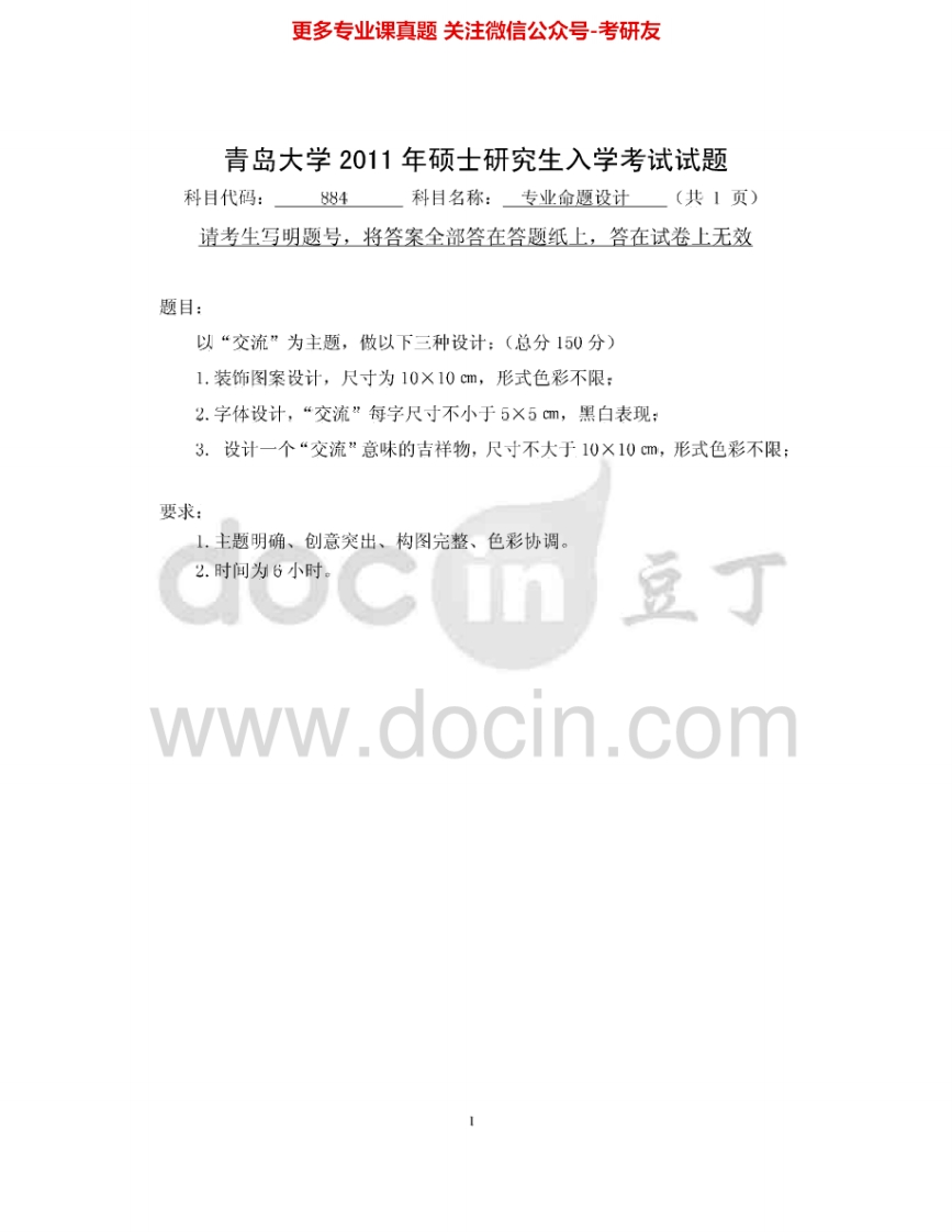青岛大学884专业命题设计2010-2015考研真题汇编猴哥6个月前发布关注私信0.23MB6页09048青岛大学884专业命题设计2010-2015考研真题汇编此内容为免费资源,请登录后查看¥0 登录查看免费资源 第1页 / 共6页 第2页 / 共6页 第3页 / 共6页 该文档为免费文档,您可直接下载完整版进行阅读 © 版权声明文章版权归作者所有,未经允许请勿转载。THE END考研专业课 喜欢就支持一下吧点赞48赞赏 分享QQ空间微博QQ好友海报分享复制链接收藏