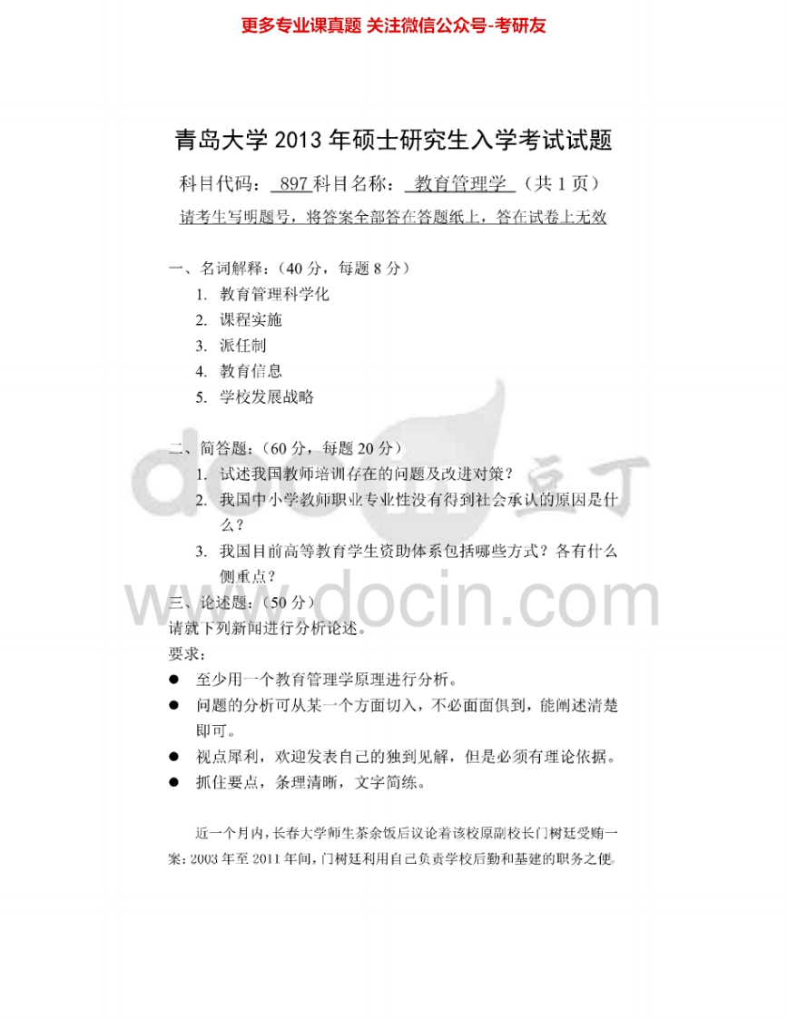 青岛大学897教育管理学2012-2015考研真题汇编猴哥6个月前发布关注私信0.30MB5页09014青岛大学897教育管理学2012-2015考研真题汇编此内容为免费资源,请登录后查看¥0 登录查看免费资源 第1页 / 共5页 第2页 / 共5页 第3页 / 共5页 该文档为免费文档,您可直接下载完整版进行阅读 © 版权声明文章版权归作者所有,未经允许请勿转载。THE END《青岛大学》(897)教育经济与教育管理综合考研资料考研专业课 喜欢就支持一下吧点赞14赞赏 分享QQ空间微博QQ好友海报分享复制链接收藏