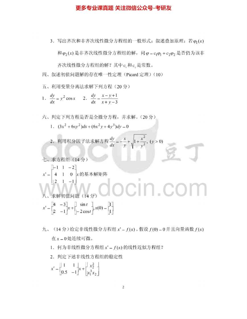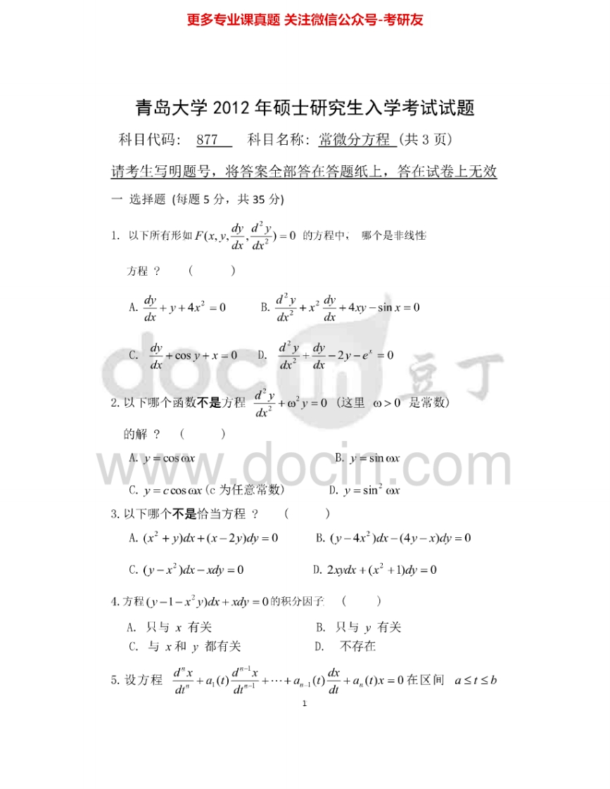 青岛大学877常微分方程2010、2012-2015考研真题汇编-学习资源网 - 分享优质学习资料