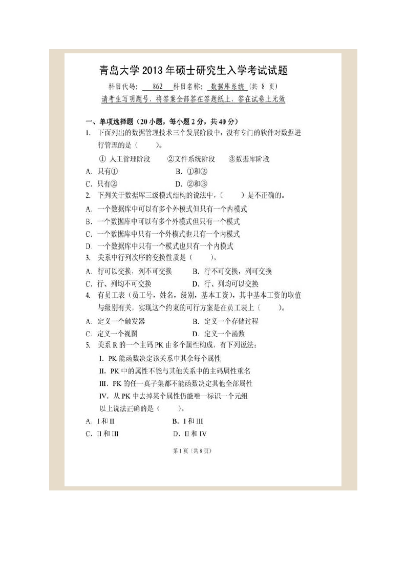青岛大学国际商学院862数据库系统历年考研真题汇编猴哥6个月前发布关注私信1.36MB33页05945青岛大学国际商学院862数据库系统历年考研真题汇编此内容为免费资源,请登录后查看¥0 登录查看免费资源 第1页 / 共33页 第2页 / 共33页 第3页 / 共33页 该文档为免费文档,您可直接下载完整版进行阅读 © 版权声明文章版权归作者所有,未经允许请勿转载。THE END考研专业课 喜欢就支持一下吧点赞45赞赏 分享QQ空间微博QQ好友海报分享复制链接收藏