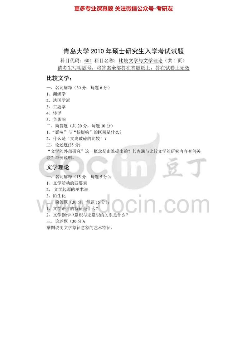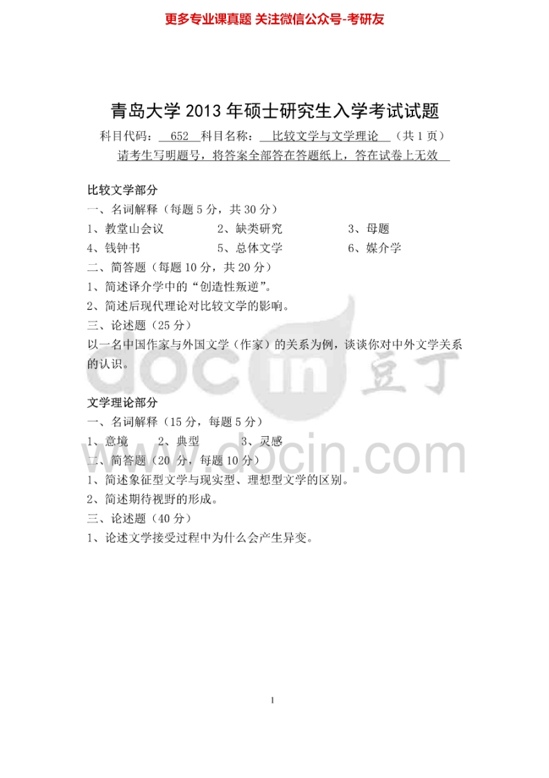 青岛大学比较文学与文学理论历年真题2009-2010、2013考研真题汇编猴哥6个月前发布关注私信0.17MB3页09246青岛大学比较文学与文学理论历年真题2009-2010、2013考研真题汇编此内容为免费资源,请登录后查看¥0 登录查看免费资源 第1页 / 共3页 第2页 / 共3页 第3页 / 共3页 已完成全部阅读,共3页 © 版权声明文章版权归作者所有,未经允许请勿转载。THE END考研专业课 喜欢就支持一下吧点赞46赞赏 分享QQ空间微博QQ好友海报分享复制链接收藏