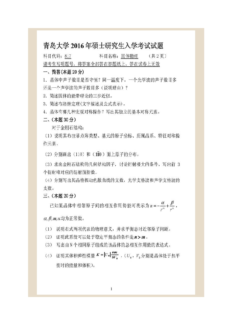 青岛大学物理科学学院817固体物理历年考研真题汇编猴哥6个月前发布关注私信1MB24页08464青岛大学物理科学学院817固体物理历年考研真题汇编此内容为免费资源,请登录后查看¥0 登录查看免费资源 第1页 / 共24页 第2页 / 共24页 第3页 / 共24页 该文档为免费文档,您可直接下载完整版进行阅读 © 版权声明文章版权归作者所有,未经允许请勿转载。THE END考研专业课 喜欢就支持一下吧点赞64赞赏 分享QQ空间微博QQ好友海报分享复制链接收藏