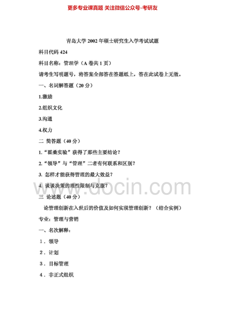 青岛大学管理学(2)历年真题2001-2002、2009-2010、2013考研真题汇编猴哥6个月前发布关注私信0.99MB13页09114青岛大学管理学(2)历年真题2001-2002、2009-2010、2013考研真题汇编此内容为免费资源,请登录后查看¥0 登录查看免费资源 第1页 / 共13页 第2页 / 共13页 第3页 / 共13页 该文档为免费文档,您可直接下载完整版进行阅读 © 版权声明文章版权归作者所有,未经允许请勿转载。THE END考研专业课 喜欢就支持一下吧点赞14赞赏 分享QQ空间微博QQ好友海报分享复制链接收藏