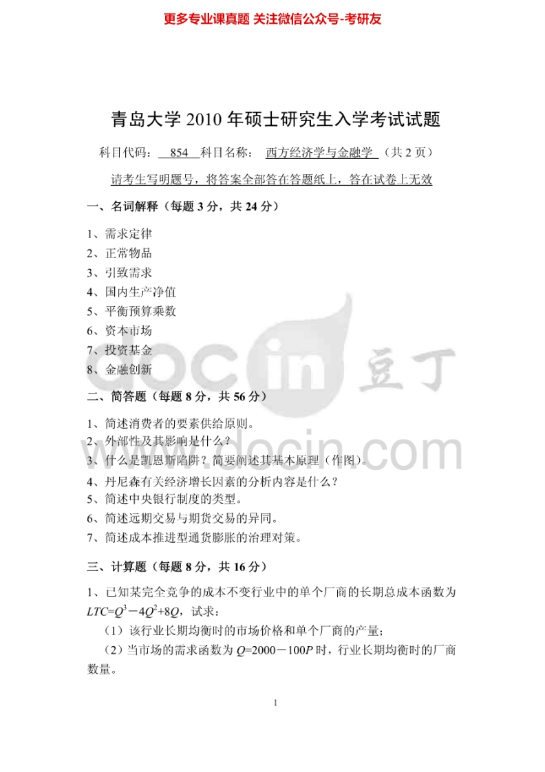 青岛大学西方经济学与金融学历年真题2009-2010考研真题汇编猴哥6个月前发布关注私信0.26MB4页06346青岛大学西方经济学与金融学历年真题2009-2010考研真题汇编此内容为免费资源,请登录后查看¥0 登录查看免费资源 第1页 / 共4页 第2页 / 共4页 第3页 / 共4页 该文档为免费文档,您可直接下载完整版进行阅读 © 版权声明文章版权归作者所有,未经允许请勿转载。THE END考研专业课 喜欢就支持一下吧点赞46赞赏 分享QQ空间微博QQ好友海报分享复制链接收藏