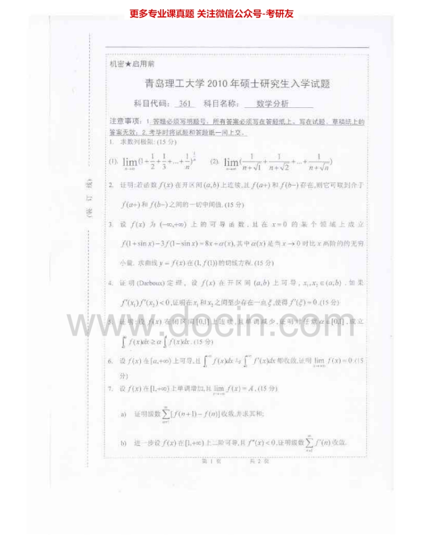 青岛理工大学601数学分析2009-2015考研真题汇编.Image.Marked猴哥6个月前发布关注私信2.44MB12页08433青岛理工大学601数学分析2009-2015考研真题汇编.Image.Marked此内容为免费资源,请登录后查看¥0 登录查看免费资源 第1页 / 共12页 第2页 / 共12页 第3页 / 共12页 该文档为免费文档,您可直接下载完整版进行阅读 © 版权声明文章版权归作者所有,未经允许请勿转载。THE END考研专业课 喜欢就支持一下吧点赞33赞赏 分享QQ空间微博QQ好友海报分享复制链接收藏