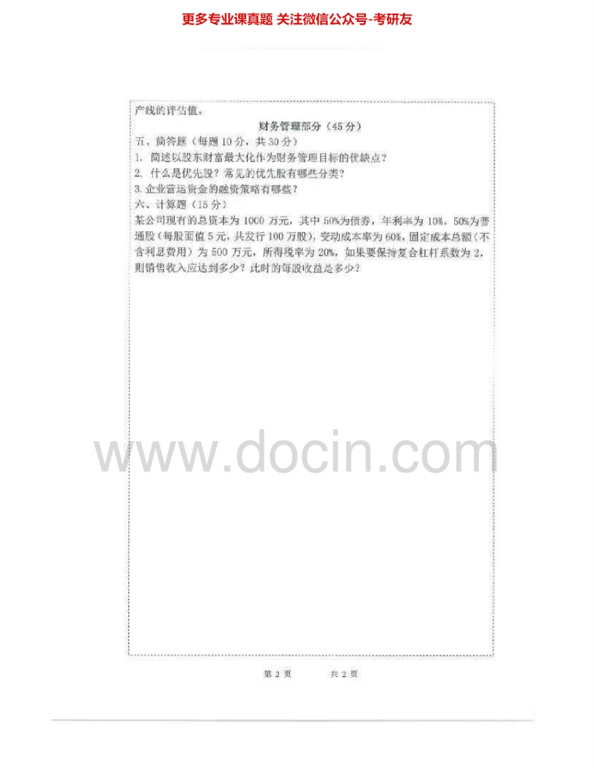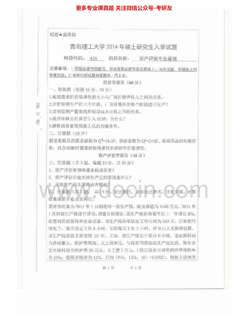 青岛理工大学436资产评估专业基础2011-2015考研真题汇编.Image.Marked猴哥6个月前发布关注私信10.45MB26页07333青岛理工大学436资产评估专业基础2011-2015考研真题汇编.Image.Marked此内容为免费资源,请登录后查看¥0 登录查看免费资源 第1页 / 共26页 第2页 / 共26页 第3页 / 共26页 该文档为免费文档,您可直接下载完整版进行阅读 © 版权声明文章版权归作者所有,未经允许请勿转载。THE END《青岛理工大学》(436)资产评估专业基础考研资料考研专业课 喜欢就支持一下吧点赞33赞赏 分享QQ空间微博QQ好友海报分享复制链接收藏