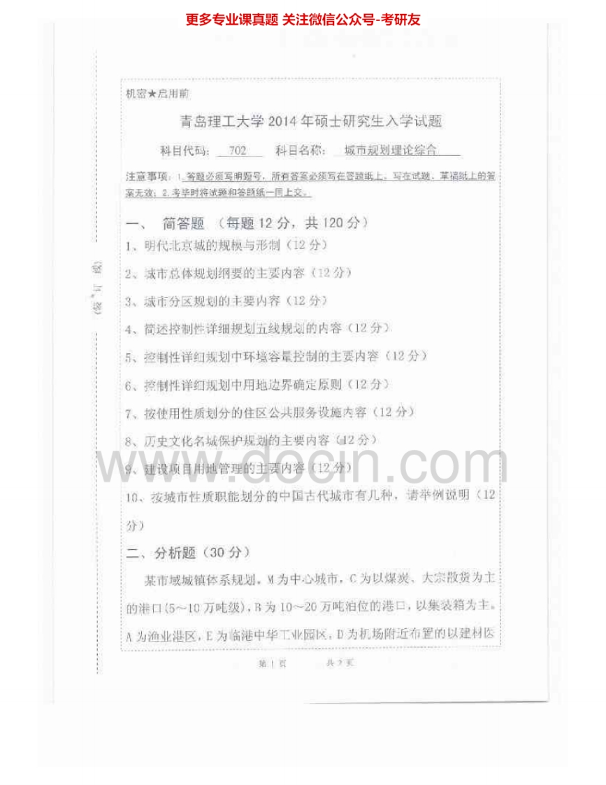 青岛理工大学702城市规划理论综合2012、2014-2015考研真题汇编.Image.Marked猴哥6个月前发布关注私信1.67MB5页07028青岛理工大学702城市规划理论综合2012、2014-2015考研真题汇编.Image.Marked此内容为免费资源,请登录后查看¥0 登录查看免费资源 第1页 / 共5页 第2页 / 共5页 第3页 / 共5页 该文档为免费文档,您可直接下载完整版进行阅读 © 版权声明文章版权归作者所有,未经允许请勿转载。THE END《青岛理工大学》(702)理论基础考研资料考研专业课 喜欢就支持一下吧点赞28赞赏 分享QQ空间微博QQ好友海报分享复制链接收藏