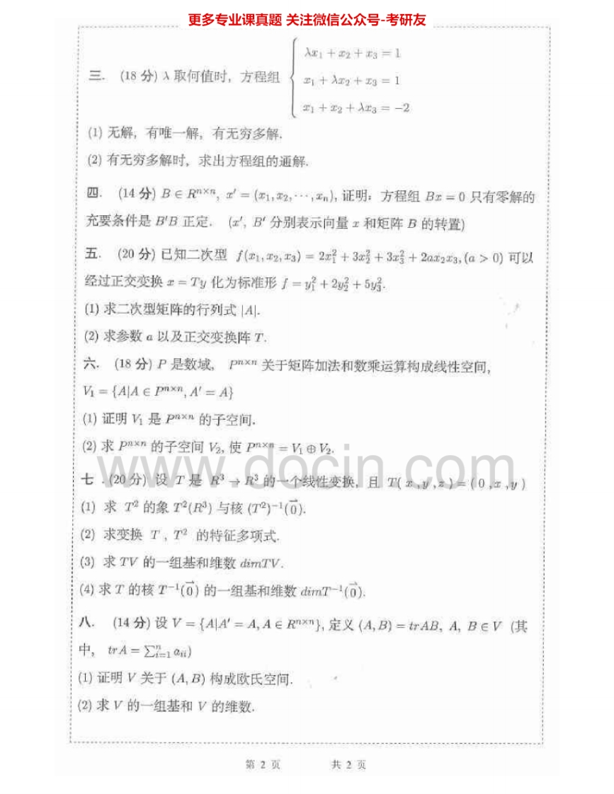 青岛理工大学816高等代数2009-2015考研真题汇编.Image.Marked猴哥6个月前发布关注私信4.47MB20页06122青岛理工大学816高等代数2009-2015考研真题汇编.Image.Marked此内容为免费资源,请登录后查看¥0 登录查看免费资源 第1页 / 共20页 第2页 / 共20页 第3页 / 共20页 该文档为免费文档,您可直接下载完整版进行阅读 © 版权声明文章版权归作者所有,未经允许请勿转载。THE END《青岛理工大学》(816)工程经济学考研资料考研专业课 喜欢就支持一下吧点赞22赞赏 分享QQ空间微博QQ好友海报分享复制链接收藏