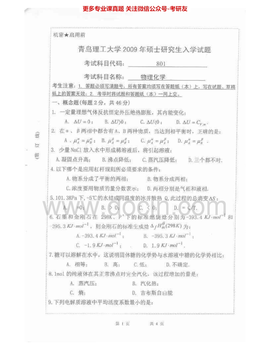 青岛理工大学801物理化学2009-2015考研真题汇编.Image.Marked
