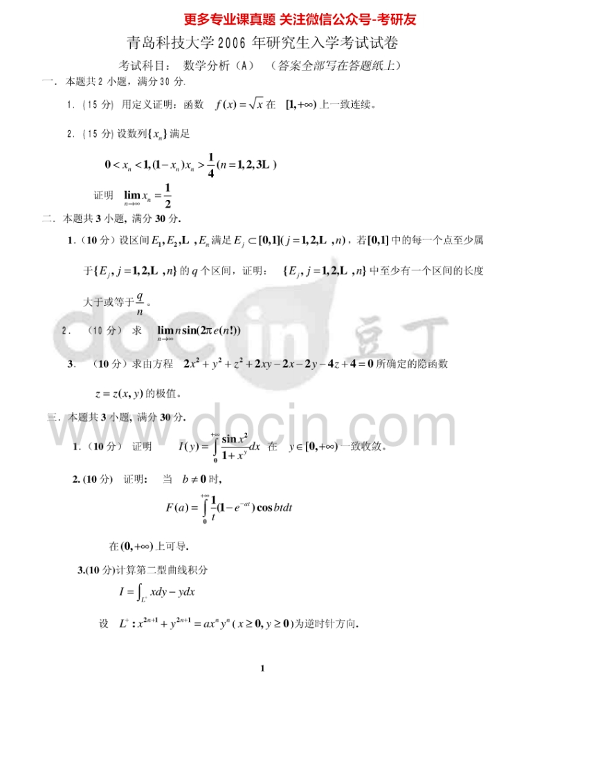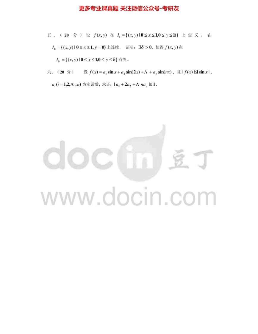 青岛科技大学640数学分析2005-2012考研真题汇编.Image.Marked猴哥6个月前发布关注私信0.72MB15页09844青岛科技大学640数学分析2005-2012考研真题汇编.Image.Marked此内容为免费资源,请登录后查看¥0 登录查看免费资源 第1页 / 共15页 第2页 / 共15页 第3页 / 共15页 该文档为免费文档,您可直接下载完整版进行阅读 © 版权声明文章版权归作者所有,未经允许请勿转载。THE END考研专业课 喜欢就支持一下吧点赞44赞赏 分享QQ空间微博QQ好友海报分享复制链接收藏