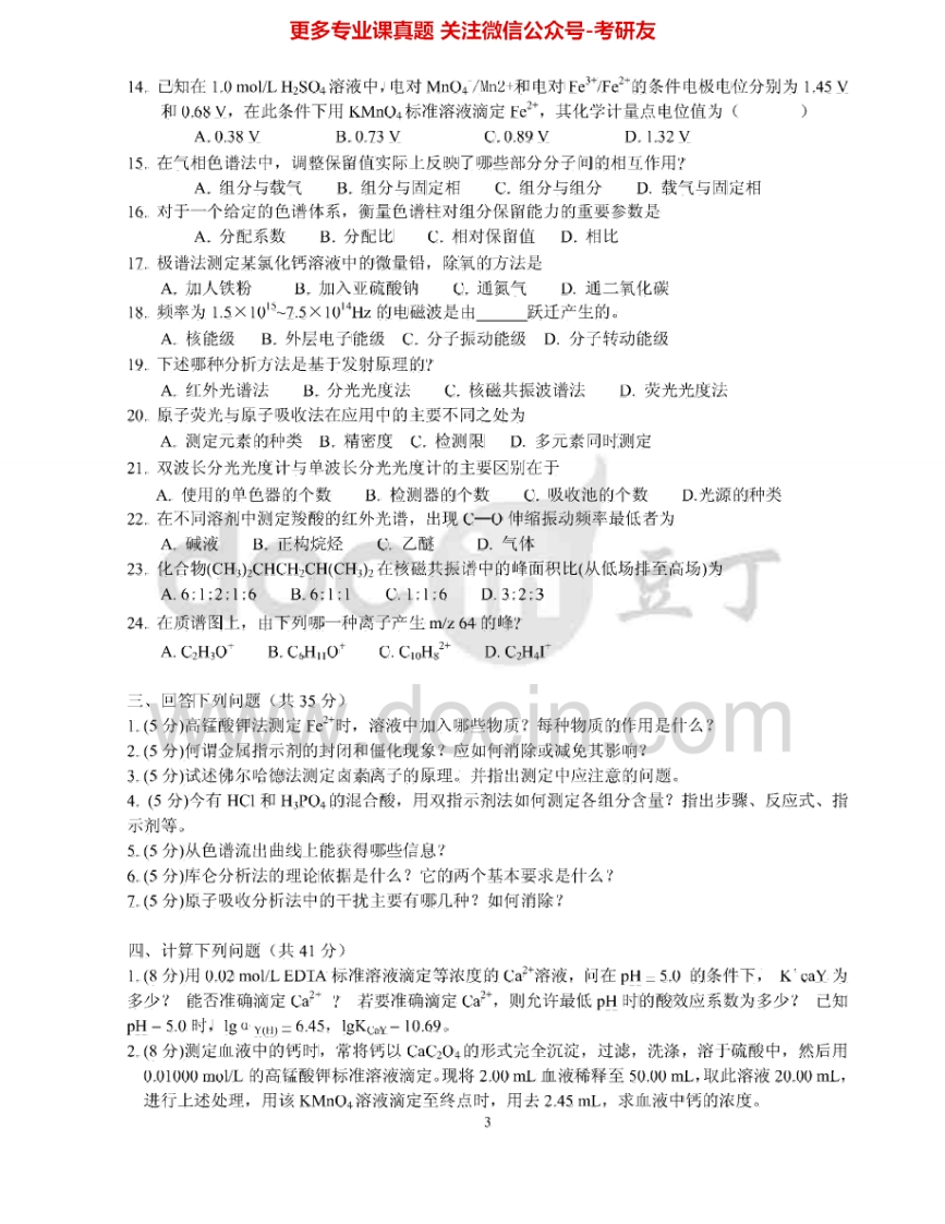 青岛科技大学620分析化学2005-2007、2009-2012考研真题汇编.Image.Marked猴哥6个月前发布关注私信2.92MB36页07430青岛科技大学620分析化学2005-2007、2009-2012考研真题汇编.Image.Marked此内容为免费资源,请登录后查看¥0 登录查看免费资源 第1页 / 共36页 第2页 / 共36页 第3页 / 共36页 该文档为免费文档,您可直接下载完整版进行阅读 © 版权声明文章版权归作者所有,未经允许请勿转载。THE END考研专业课 喜欢就支持一下吧点赞30赞赏 分享QQ空间微博QQ好友海报分享复制链接收藏