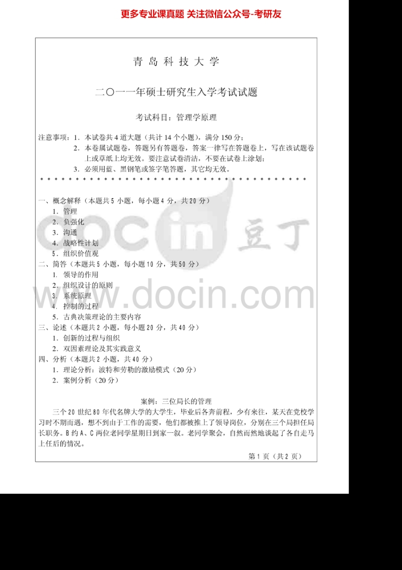 青岛科技大学管理学原理2005-2012考研真题汇编.Image.Marked猴哥6个月前发布关注私信1.52MB19页08425青岛科技大学管理学原理2005-2012考研真题汇编.Image.Marked此内容为免费资源,请登录后查看¥0 登录查看免费资源 第1页 / 共19页 第2页 / 共19页 第3页 / 共19页 该文档为免费文档,您可直接下载完整版进行阅读 © 版权声明文章版权归作者所有,未经允许请勿转载。THE END考研专业课 喜欢就支持一下吧点赞25赞赏 分享QQ空间微博QQ好友海报分享复制链接收藏