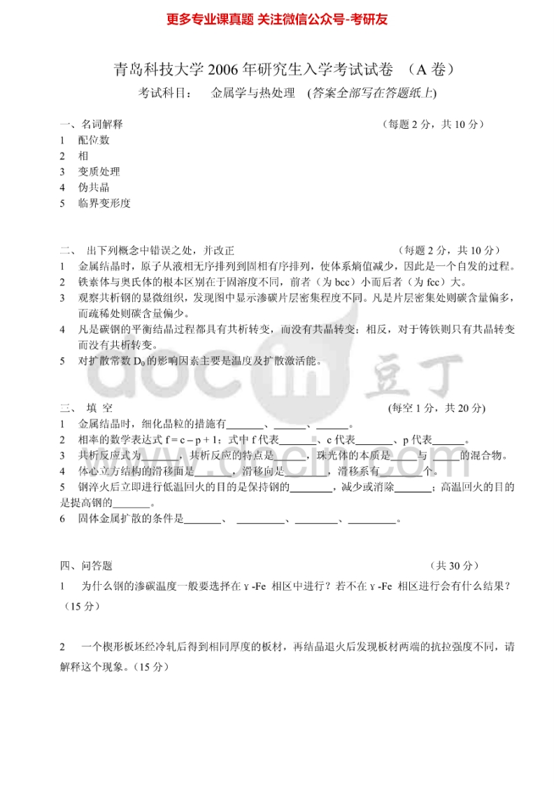 青岛科技大学金属学与热处理2005-2007、2009-2012考研真题汇编.Image.Marked猴哥6个月前发布关注私信1.48MB17页04066青岛科技大学金属学与热处理2005-2007、2009-2012考研真题汇编.Image.Marked此内容为免费资源,请登录后查看¥0 登录查看免费资源 第1页 / 共17页 第2页 / 共17页 第3页 / 共17页 该文档为免费文档,您可直接下载完整版进行阅读 © 版权声明文章版权归作者所有,未经允许请勿转载。THE END考研专业课 喜欢就支持一下吧点赞66赞赏 分享QQ空间微博QQ好友海报分享复制链接收藏