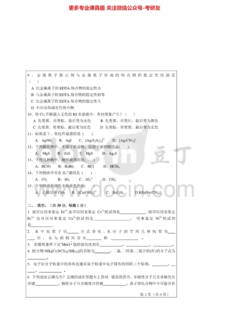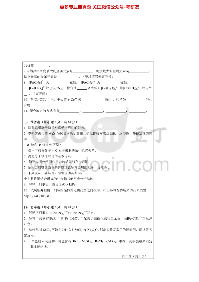 青岛科技大学无机化学2005-2012考研真题汇编.Image.Marked猴哥6个月前发布关注私信2.37MB34页06538青岛科技大学无机化学2005-2012考研真题汇编.Image.Marked此内容为免费资源,请登录后查看¥0 登录查看免费资源 第1页 / 共34页 第2页 / 共34页 第3页 / 共34页 该文档为免费文档,您可直接下载完整版进行阅读 © 版权声明文章版权归作者所有,未经允许请勿转载。THE END考研专业课 喜欢就支持一下吧点赞38赞赏 分享QQ空间微博QQ好友海报分享复制链接收藏