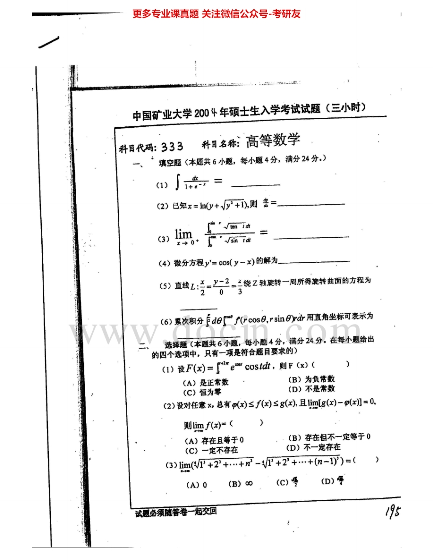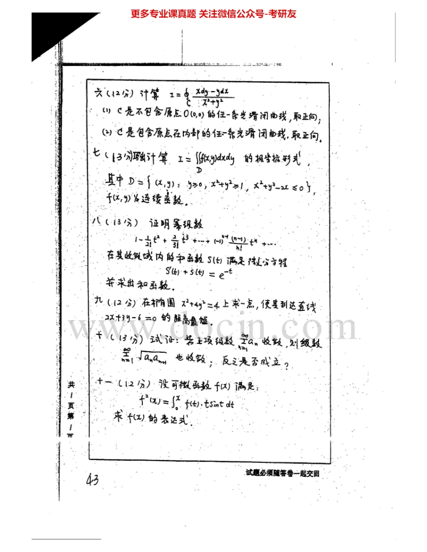 中国矿业大学(徐州)603高等数学2003-2007、2010考研真题汇编.Image.Marked猴哥6个月前发布关注私信3.81MB19页06717中国矿业大学(徐州)603高等数学2003-2007、2010考研真题汇编.Image.Marked此内容为免费资源,请登录后查看¥0 登录查看免费资源 第1页 / 共19页 第2页 / 共19页 第3页 / 共19页 该文档为免费文档,您可直接下载完整版进行阅读 © 版权声明文章版权归作者所有,未经允许请勿转载。THE END考研专业课 喜欢就支持一下吧点赞17赞赏 分享QQ空间微博QQ好友海报分享复制链接收藏