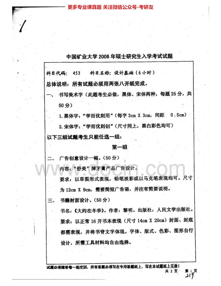 中国矿业大学(徐州)505设计基础(4小时)2005-2007、2010考研真题汇编.Image.Marked猴哥6个月前发布关注私信1.85MB9页09043中国矿业大学(徐州)505设计基础(4小时)2005-2007、2010考研真题汇编.Image.Marked此内容为免费资源,请登录后查看¥0 登录查看免费资源 第1页 / 共9页 第2页 / 共9页 第3页 / 共9页 该文档为免费文档,您可直接下载完整版进行阅读 © 版权声明文章版权归作者所有,未经允许请勿转载。THE END《中国矿业大学》(505)设计基础(4小时)考研资料考研专业课 喜欢就支持一下吧点赞43赞赏 分享QQ空间微博QQ好友海报分享复制链接收藏