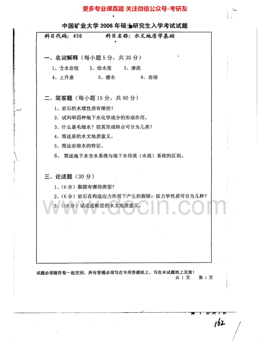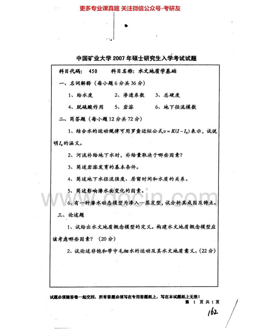 中国矿业大学(徐州)850水文地质学基础2005-2007考研真题汇编.Image.Marked猴哥6个月前发布关注私信0.53MB3页06918中国矿业大学(徐州)850水文地质学基础2005-2007考研真题汇编.Image.Marked此内容为免费资源,请登录后查看¥0 登录查看免费资源 第1页 / 共3页 第2页 / 共3页 第3页 / 共3页 已完成全部阅读,共3页 © 版权声明文章版权归作者所有,未经允许请勿转载。THE END《中国矿业大学》(850)水文地质学基础考研资料考研专业课 喜欢就支持一下吧点赞18赞赏 分享QQ空间微博QQ好友海报分享复制链接收藏