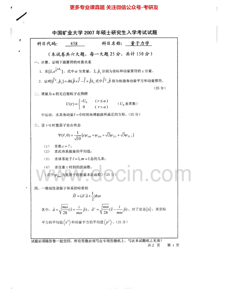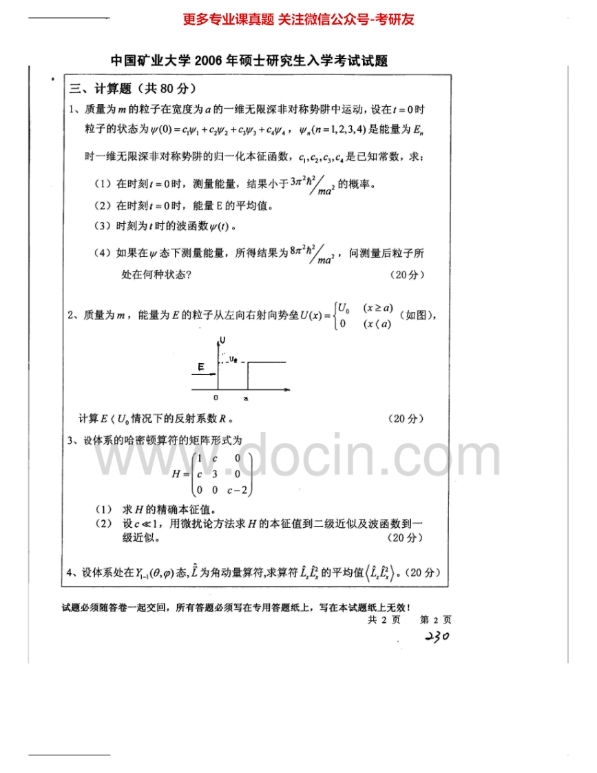中国矿业大学(徐州)858量子力学2006-2007考研真题汇编.Image.Marked猴哥6个月前发布关注私信0.73MB4页05251中国矿业大学(徐州)858量子力学2006-2007考研真题汇编.Image.Marked此内容为免费资源,请登录后查看¥0 登录查看免费资源 第1页 / 共4页 第2页 / 共4页 第3页 / 共4页 该文档为免费文档,您可直接下载完整版进行阅读 © 版权声明文章版权归作者所有,未经允许请勿转载。THE END考研专业课 喜欢就支持一下吧点赞51赞赏 分享QQ空间微博QQ好友海报分享复制链接收藏