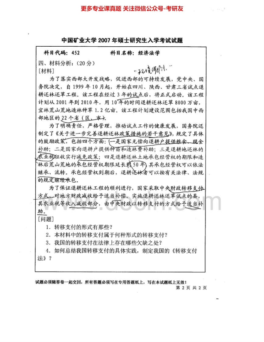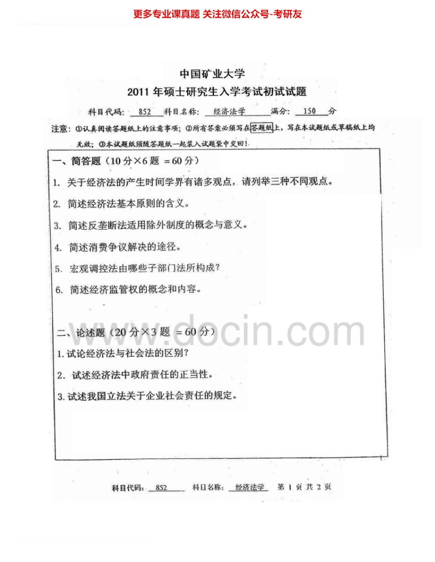 中国矿业大学(徐州)852经济法学2007、2010-2011考研真题汇编.Image.Marked猴哥6个月前发布关注私信1.53MB6页09039中国矿业大学(徐州)852经济法学2007、2010-2011考研真题汇编.Image.Marked此内容为免费资源,请登录后查看¥0 登录查看免费资源 第1页 / 共6页 第2页 / 共6页 第3页 / 共6页 该文档为免费文档,您可直接下载完整版进行阅读 © 版权声明文章版权归作者所有,未经允许请勿转载。THE END考研专业课 喜欢就支持一下吧点赞39赞赏 分享QQ空间微博QQ好友海报分享复制链接收藏