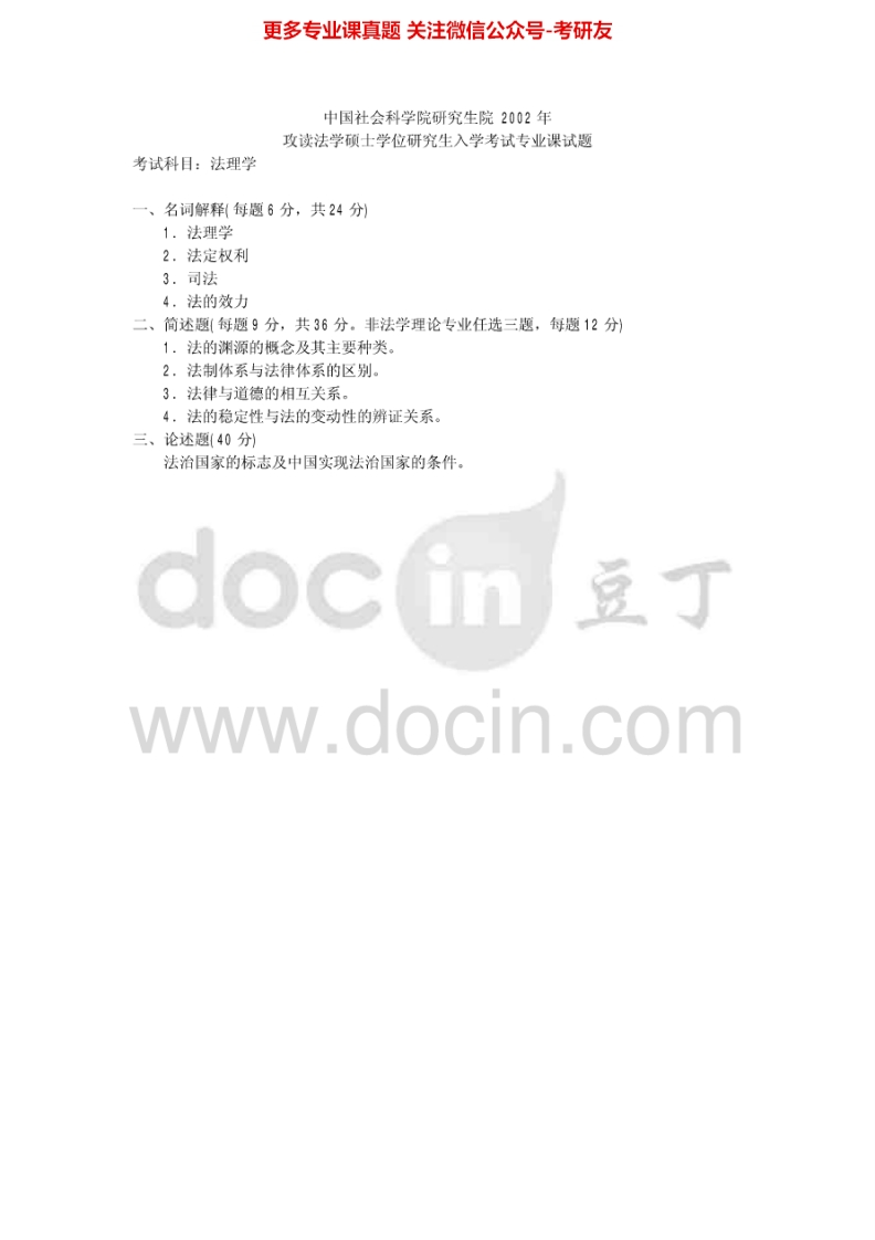 中国社会科学院668法理学2001-2004考研真题汇编.Image.Marked猴哥6个月前发布关注私信0.16MB4页05663中国社会科学院668法理学2001-2004考研真题汇编.Image.Marked此内容为免费资源,请登录后查看¥0 登录查看免费资源 第1页 / 共4页 第2页 / 共4页 第3页 / 共4页 该文档为免费文档,您可直接下载完整版进行阅读 © 版权声明文章版权归作者所有,未经允许请勿转载。THE END考研专业课 喜欢就支持一下吧点赞63赞赏 分享QQ空间微博QQ好友海报分享复制链接收藏