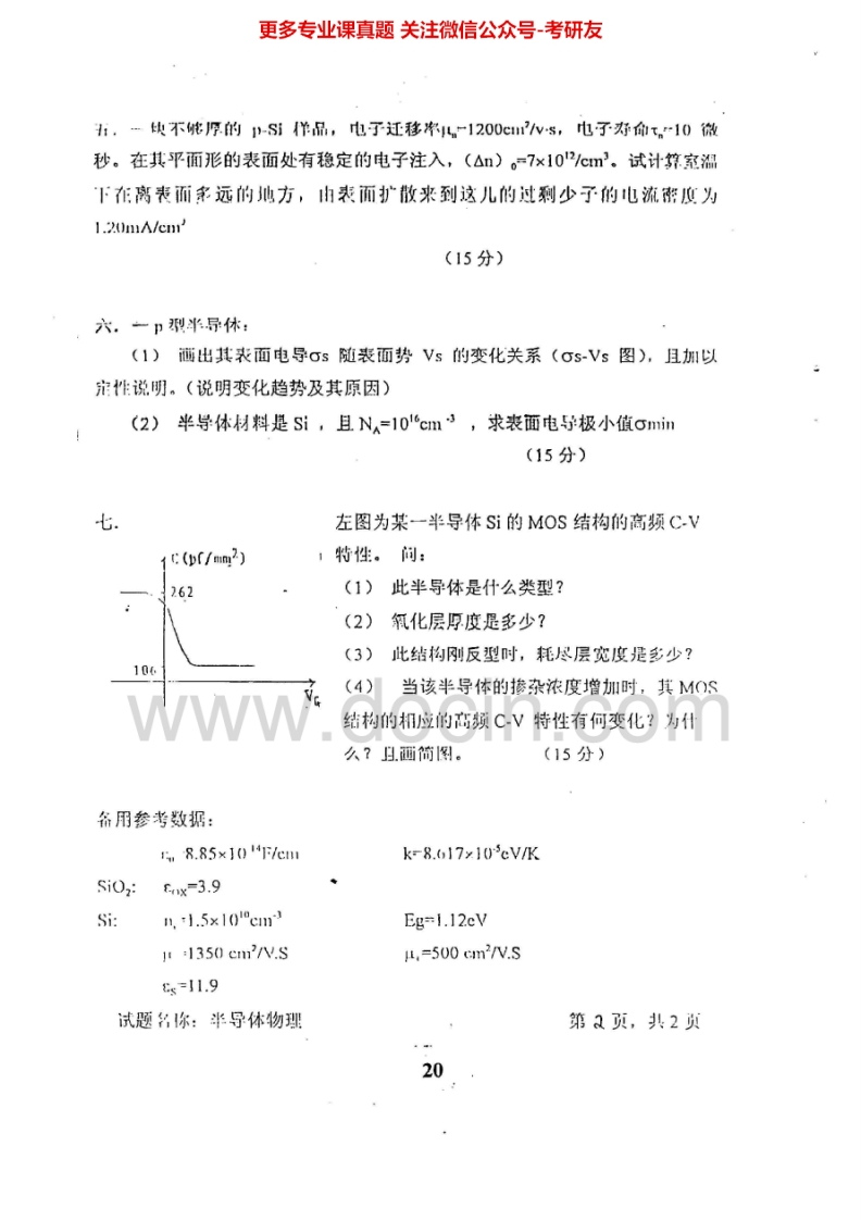 中国科学院大学804半导体物理1998-1999、2001、2004、2007、2012-2013其中1997-1999有答案考研真题汇编.Image.Marked猴哥6个月前发布关注私信3.39MB21页08036中国科学院大学804半导体物理1998-1999、2001、2004、2007、2012-2013其中1997-1999有答案考研真题汇编.Image.Marked此内容为免费资源,请登录后查看¥0 登录查看免费资源 第1页 / 共21页 第2页 / 共21页 第3页 / 共21页 该文档为免费文档,您可直接下载完整版进行阅读 © 版权声明文章版权归作者所有,未经允许请勿转载。THE END《中国科学院大学》(804)半导体物理考研资料《中国科学院大学》(997)生理心理学考研资料考研专业课 喜欢就支持一下吧点赞36赞赏 分享QQ空间微博QQ好友海报分享复制链接收藏