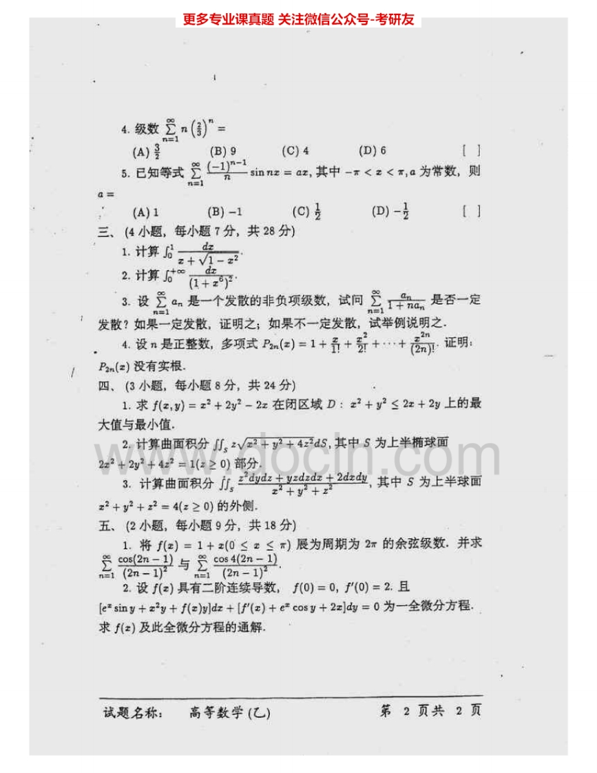 中国科学院大学602高等数学(乙)2001-2002、2005、2012-2013其中2001-2002有答案考研真题汇编.Image.Marked猴哥6个月前发布关注私信2.96MB20页07515中国科学院大学602高等数学(乙)2001-2002、2005、2012-2013其中2001-2002有答案考研真题汇编.Image.Marked此内容为免费资源,请登录后查看¥0 登录查看免费资源 第1页 / 共20页 第2页 / 共20页 第3页 / 共20页 该文档为免费文档,您可直接下载完整版进行阅读 © 版权声明文章版权归作者所有,未经允许请勿转载。THE END《中国科学院大学》(602)高等数学(乙)考研资料考研专业课 喜欢就支持一下吧点赞15赞赏 分享QQ空间微博QQ好友海报分享复制链接收藏
