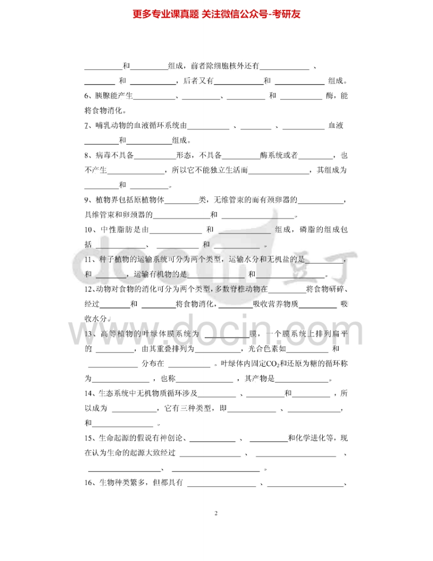 中国科学院大学846普通生物学2004-2007、2009、2012-2014考研真题汇编.Image.Marked猴哥6个月前发布关注私信1.22MB20页09040中国科学院大学846普通生物学2004-2007、2009、2012-2014考研真题汇编.Image.Marked此内容为免费资源,请登录后查看¥0 登录查看免费资源 第1页 / 共20页 第2页 / 共20页 第3页 / 共20页 该文档为免费文档,您可直接下载完整版进行阅读 © 版权声明文章版权归作者所有,未经允许请勿转载。THE END《中国科学院大学》(846)普通生物学考研资料考研专业课 喜欢就支持一下吧点赞40赞赏 分享QQ空间微博QQ好友海报分享复制链接收藏