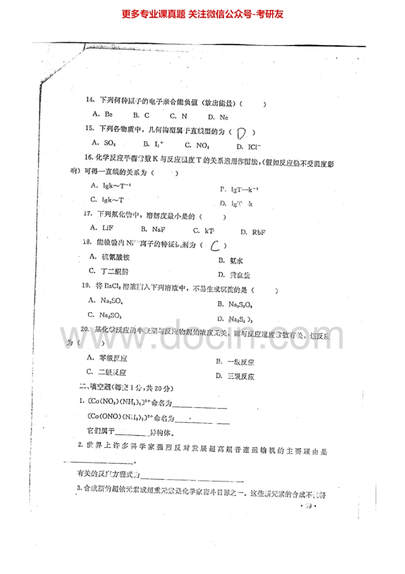 中国科学院大学819无机化学1997-1998、2001-2008、2012-2013其中2001、2003-2008有答案考研真题汇编.Image.Marked猴哥6个月前发布关注私信20.78MB72页07032中国科学院大学819无机化学1997-1998、2001-2008、2012-2013其中2001、2003-2008有答案考研真题汇编.Image.Marked此内容为免费资源,请登录后查看¥0 登录查看免费资源 第1页 / 共72页 第2页 / 共72页 第3页 / 共72页 该文档为免费文档,您可直接下载完整版进行阅读 © 版权声明文章版权归作者所有,未经允许请勿转载。THE END《中国科学院大学》(819)无机化学考研资料《中国科学院大学》(997)生理心理学考研资料考研专业课 喜欢就支持一下吧点赞32赞赏 分享QQ空间微博QQ好友海报分享复制链接收藏