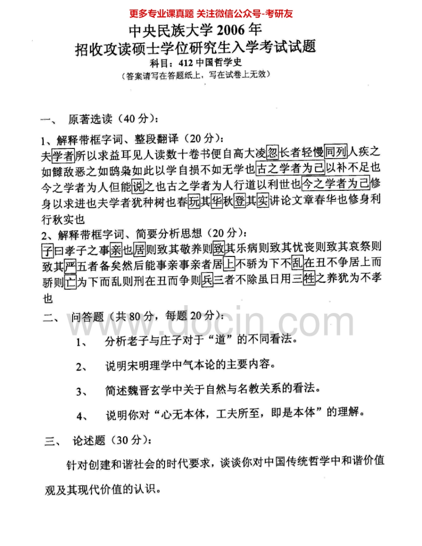 中央民族大学611中国哲学史2005-2006考研真题汇编猴哥6个月前发布关注私信0.50MB2页09726中央民族大学611中国哲学史2005-2006考研真题汇编此内容为免费资源,请登录后查看¥0 登录查看免费资源 第1页 / 共2页 第2页 / 共2页 已完成全部阅读,共2页 © 版权声明文章版权归作者所有,未经允许请勿转载。THE END《中央民族大学》(611)中国哲学史考研资料考研专业课 喜欢就支持一下吧点赞26赞赏 分享QQ空间微博QQ好友海报分享复制链接收藏